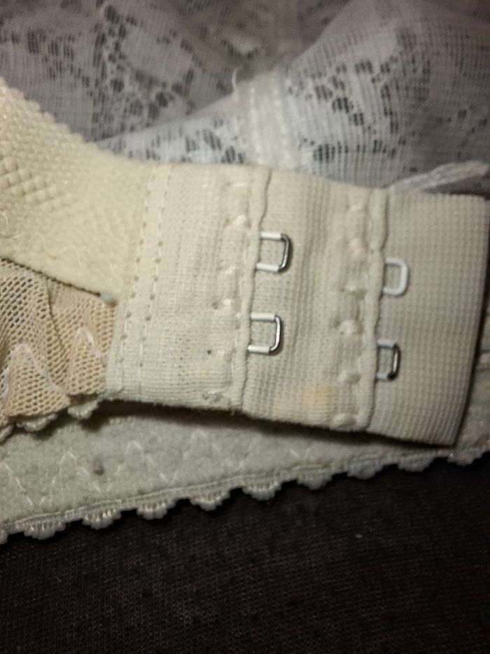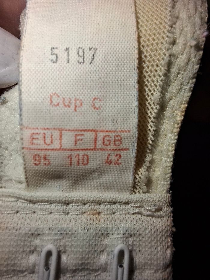 Vends soutien-gorge de la marque Naturana, reconnu pour son excellent maintien sans sacrifier le confort. Idéal pour un usage quotidien. ​Marque : Naturana ​Modèle : 5197 (Soutien-gorge de maintien classique) ​Taille : 110C France (correspond à un 95C EU / 42C GB) ​Couleur : Blanc / Blanc cassé ​Style : Bonnet avec broderie dentelle florale sur le dessus. ​Caractéristiques : * Sans armatures pour un confort total. ​Larges bretelles réglables pour soulager les épaules. ​Fermeture au dos par double agrafage (3 positions). ​État : Bon état général (voir photos).
