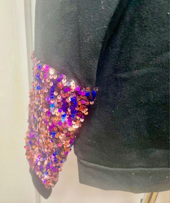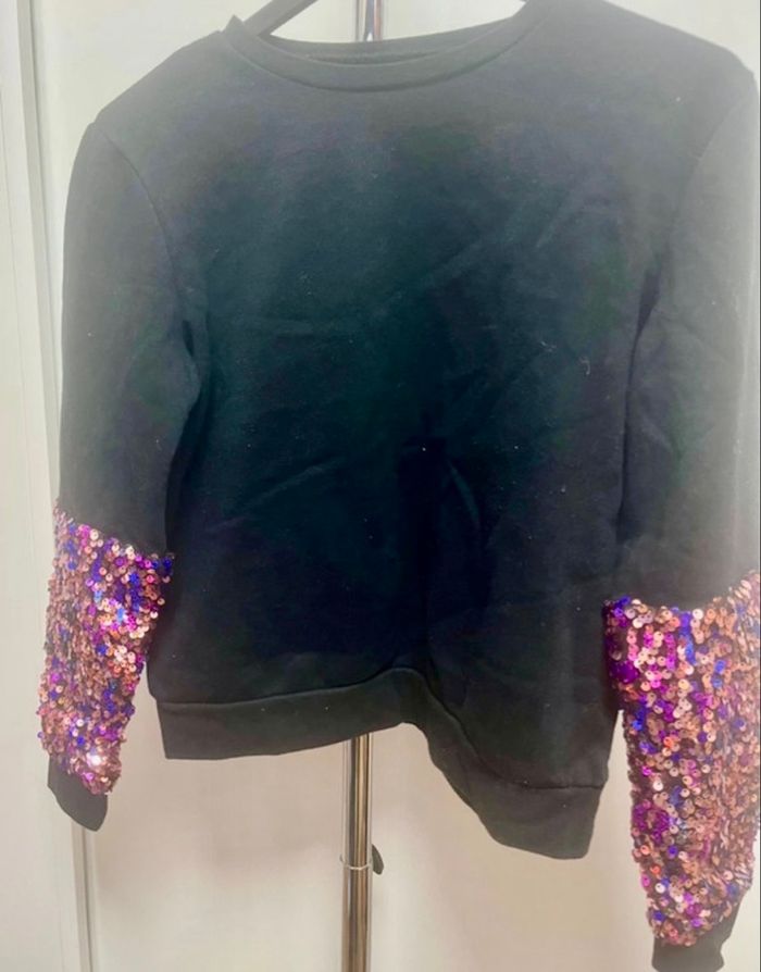 Sweat avec sequins sur les manches taille 12 ans marque Kiabi Bon état Matiere 60% Cotton et 40% polyester