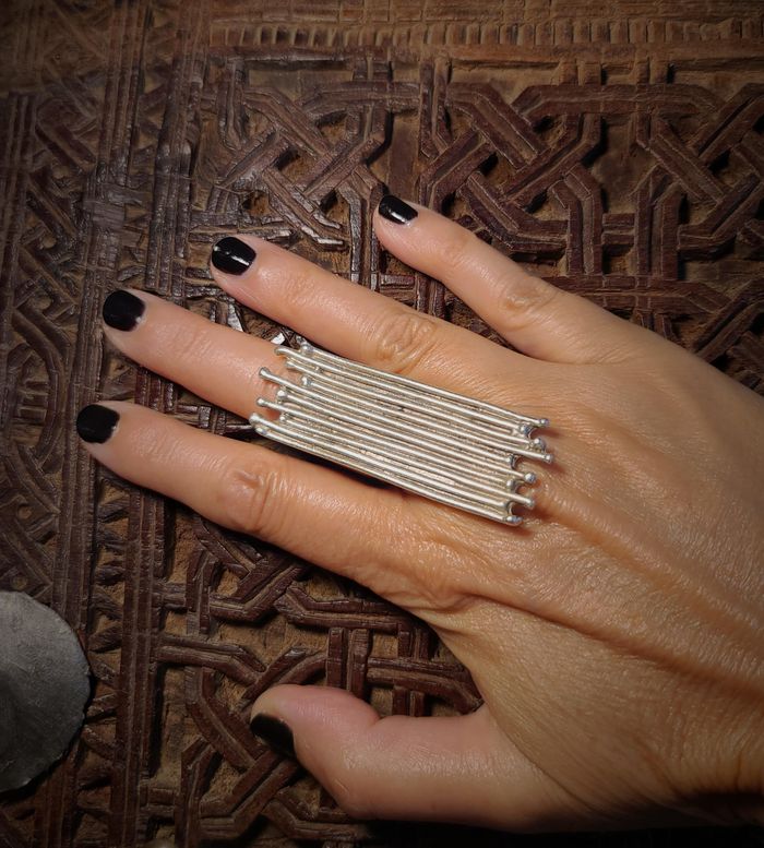 Bague longue plaqué argent artisanale et ajustable - photo numéro 5