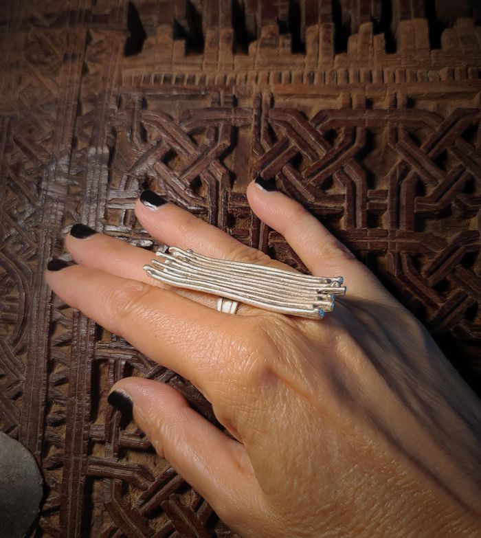 Bague longue plaqué argent artisanale et ajustable - photo numéro 2