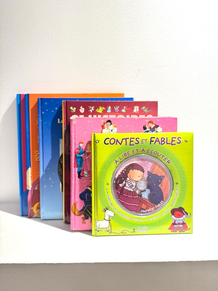 Comprends : -Contes et fables à lire et à écouter . 3 belles histoires: la chèvre de monsieur Seguin, la chat botté, Baba Yaga. Avec un CD. très bon état -Au royaume des princesses Disney, histoires d'amour et d'amitié . Presque 300 pages avec 19 histoires de Cendrillon, Blanche Neige, la petite sirène ... Aux éditions Hachette. Tranche abîmée. -Grand album 21 histoires de princesses, de fées, de lutin, de dragons, de chevaliers,bon état - Le monde merveilleux de la connaissance : les dinosaures avec mickey - Au pays des contes de fée : La belle au bois dormant. Format bande dessinée. - Au pays des contes de fée : Le chat botté. Une partie de la tranche est arrachée (dernière photo). Le lot pour 8€ N'hésitez pas à m'écrire si vous voulez seulement certain livre Je vend d'autres livres et jouets pour enfants