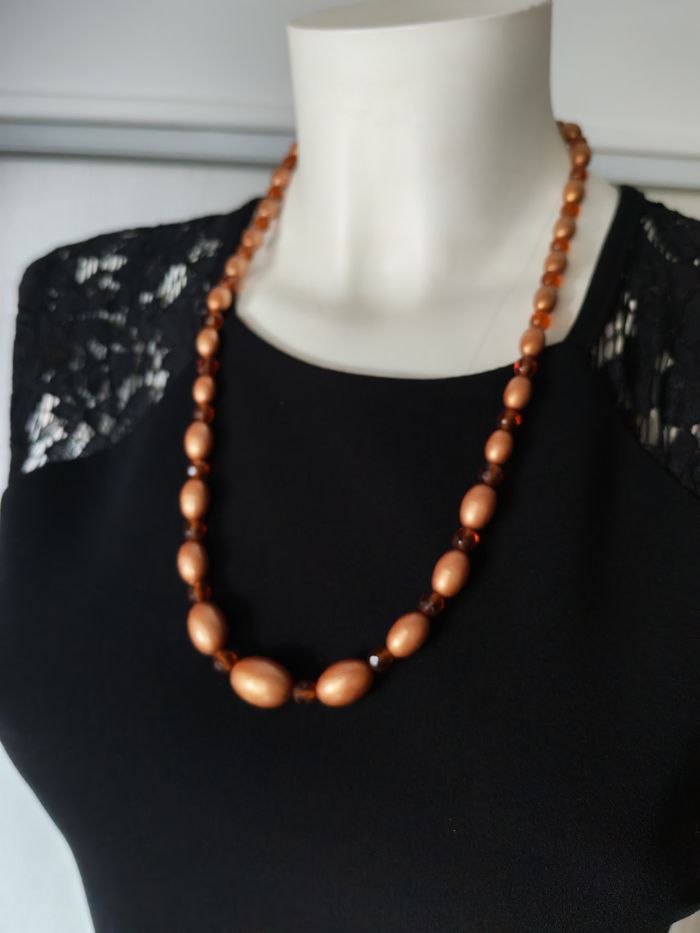 Collier sautoir de perles marron cuivrée - photo numéro 1
