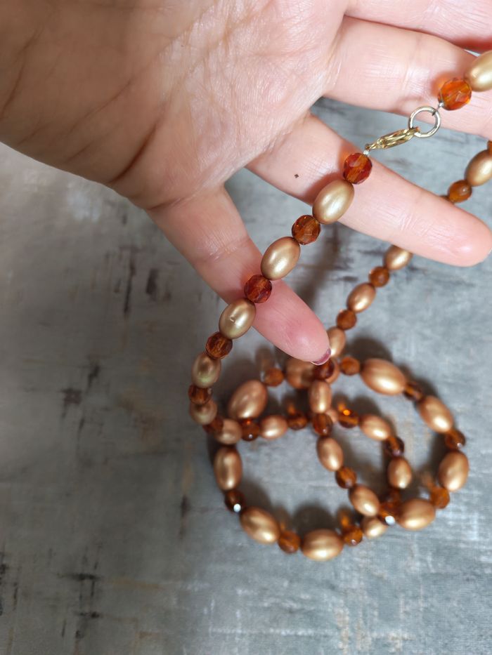 Collier sautoir de perles marron cuivrée - photo numéro 3