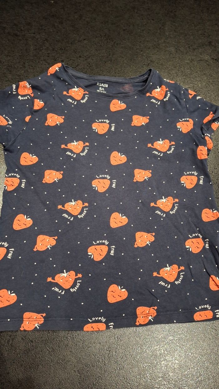Tee shirt de la marque kiabi. Tres bon etat Bleu fonce et fraise rouge