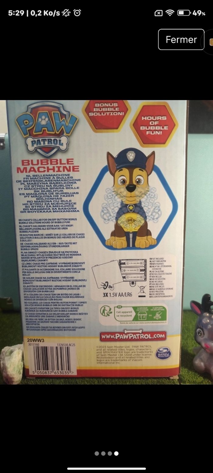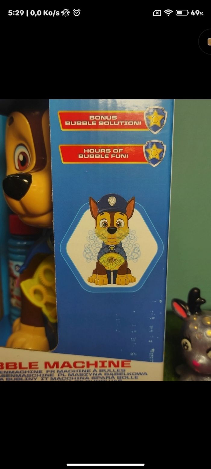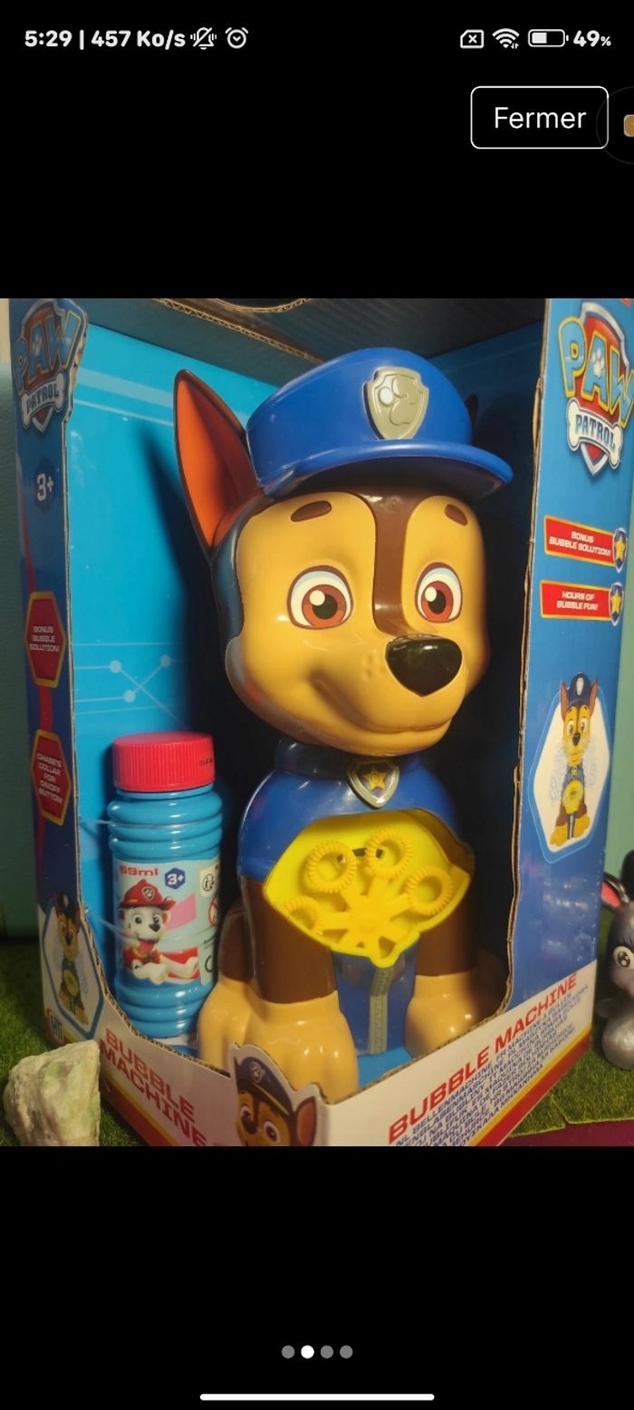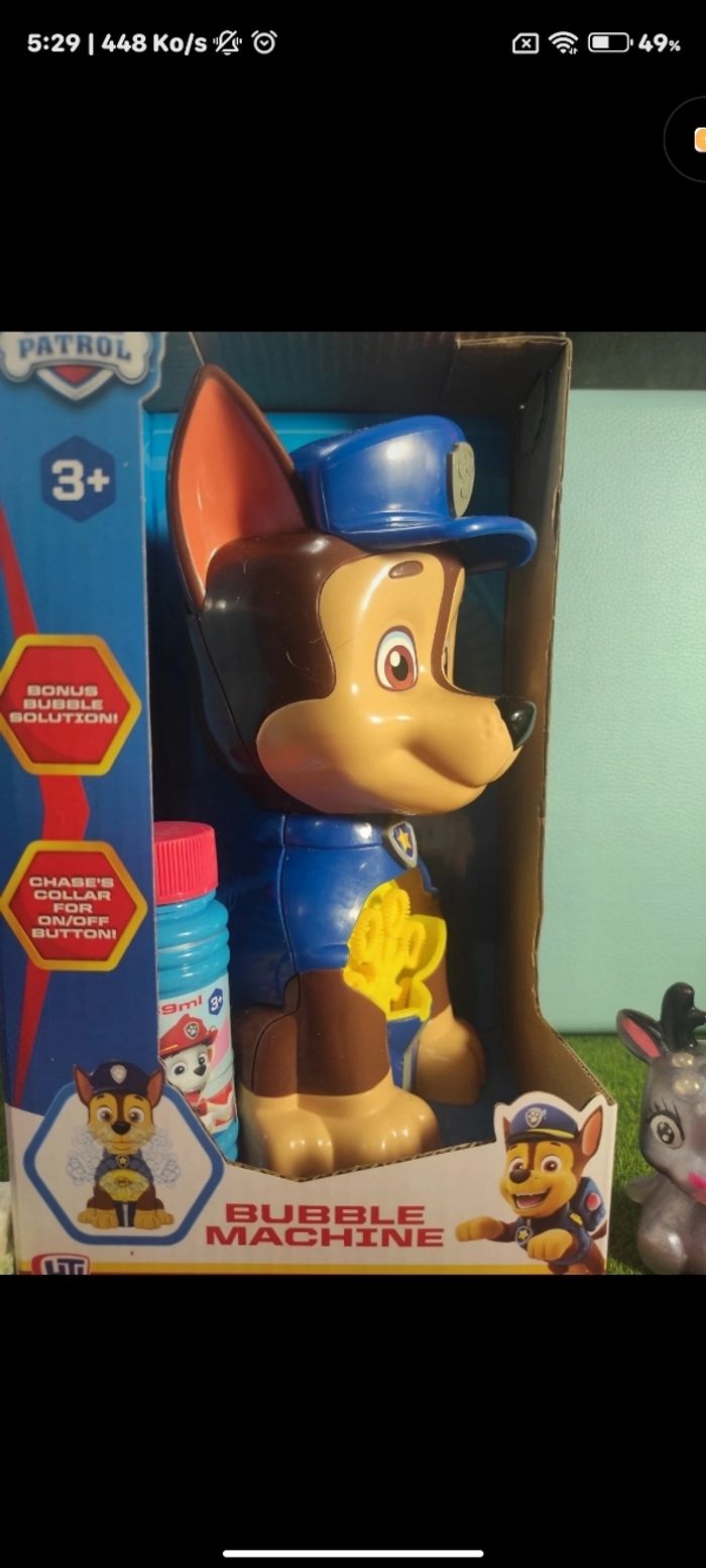 🌸Jouet a Bulle Pat Patrouille Parfait Pour les Petits Fan De la pat patrouille a l'effigie de Chase 😊 🌸 Parfait Pour Une fête Ou anniversaire 🥳 ou même au quotidien ✨ Produits neufs Jamais utilisé ✨Dans sa boîte d'origine ✨Pile non fourni (comme indiqué sur la boîte ✨Envoie rapide et soigné 📦