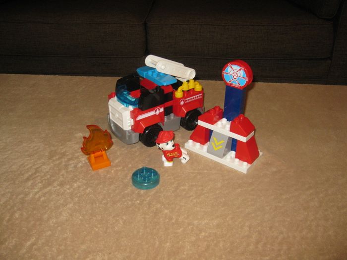 camion de pompier pat patrouille , briques mega bloks compatible lego duplo manque quelques pièces .