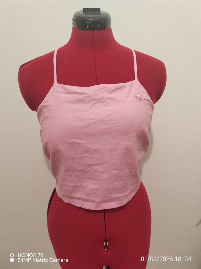 Too en lin Avec brassiere integree Coque amovibles Se reseere dans le dos Longueur totale 33 cm a partir du haut du top Largeur plat 51 cm Matiere extensible #geliscyrilletailleL #geliscyrilletaille40 Ref2/CA6