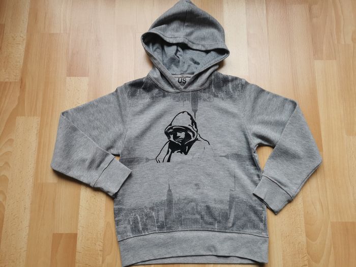 SWEAT GARCON 8 ANS Sweat US DENIM à capuche gris, motif garçon BON ETAT !!!