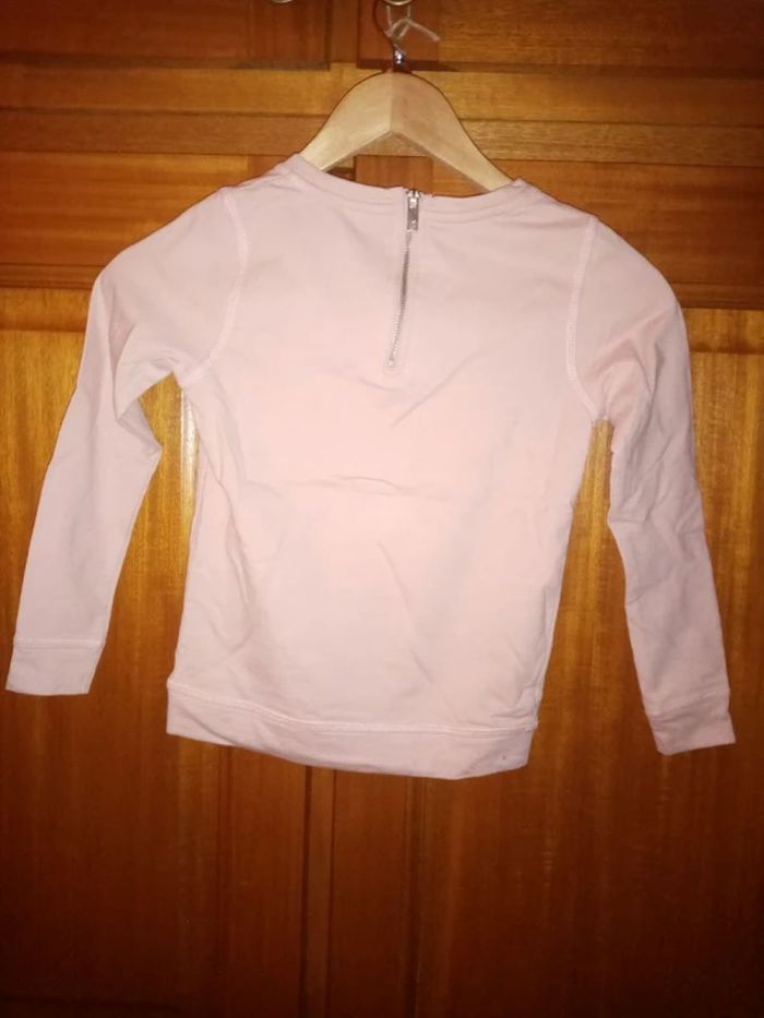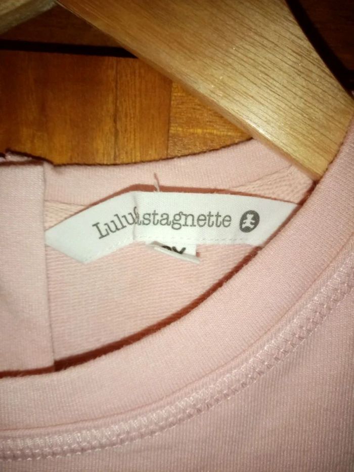 Sweat Lulu Castagnette rose avec sequins gris argenté, fermeture éclair au dos, 8 ans, 68 % coton, 32% polyester. En très bon état