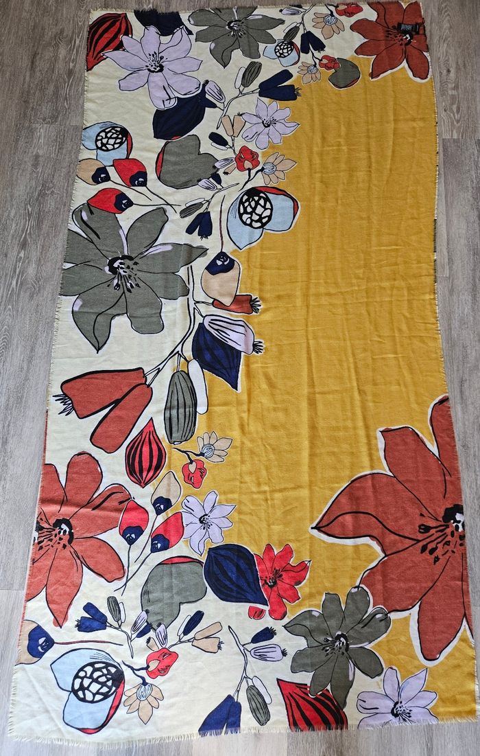 Grand foulard / étole multicolore de la marque Parfois En excellent état car peu servie (! Juste une petite marque dans le tissu - cf photo - très peu visible) Foulard propre, lavé pour la vente Dimensions sur les photos Maison non fumeur