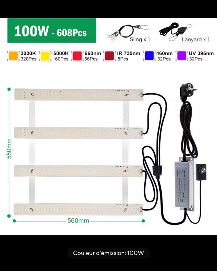 Lampe LED 120 w neuf à spectre complet pour culture Neuf dans la boîte complet avec accessoires avec régulateur d’intensité de la lumière idéal pour la croissance et floraison avec spectre complet