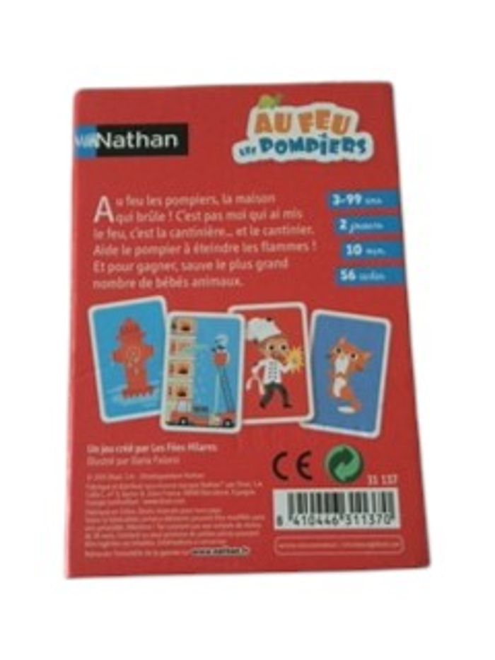 Un jeu de bataille revisité. Le cantinier et la cantinière ont encore mis le feu aux cuisines et l'immeuble est en feu ! Aide les pompiers à sauver le plus d'animaux du feu pour remporter la partie Un jeu très drôle pour toute la famille où les joueurs devront accumuler le plus d'animaux sauvés pour gagner des points et ainsi la partie