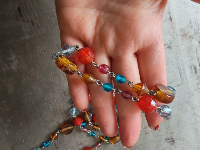 Sautoir de perles de verre multicolor vintage - photo numéro 2