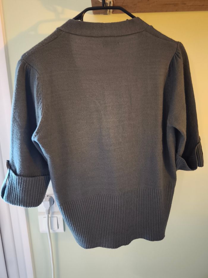 🧥 cardigan style crop-top & manches ¾ 🎨Gris souris, gris clair 📏taille 1 =36/38 🌿bon état, un peu bouloché 📦Envoi soigné & rapide