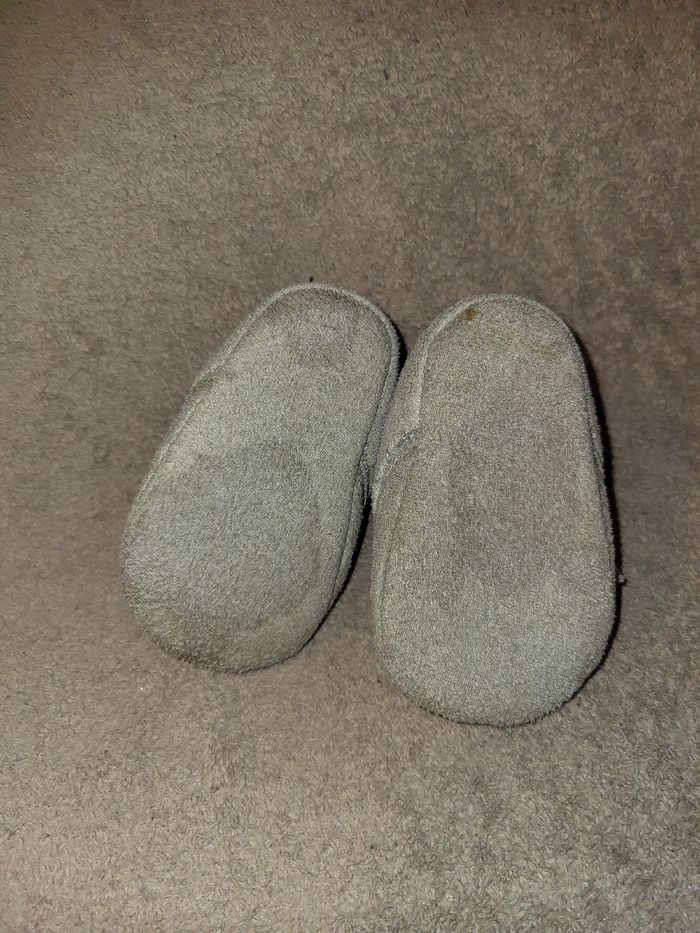 Chaussures souples chaussons mixte Grain de blé 17 / 18 gris clair Mesure semelle 10,5 cm Tissu du dessous tâché Peut être offerte sur simple demande pour tout autre achat #virgy61chaussuresgarcon