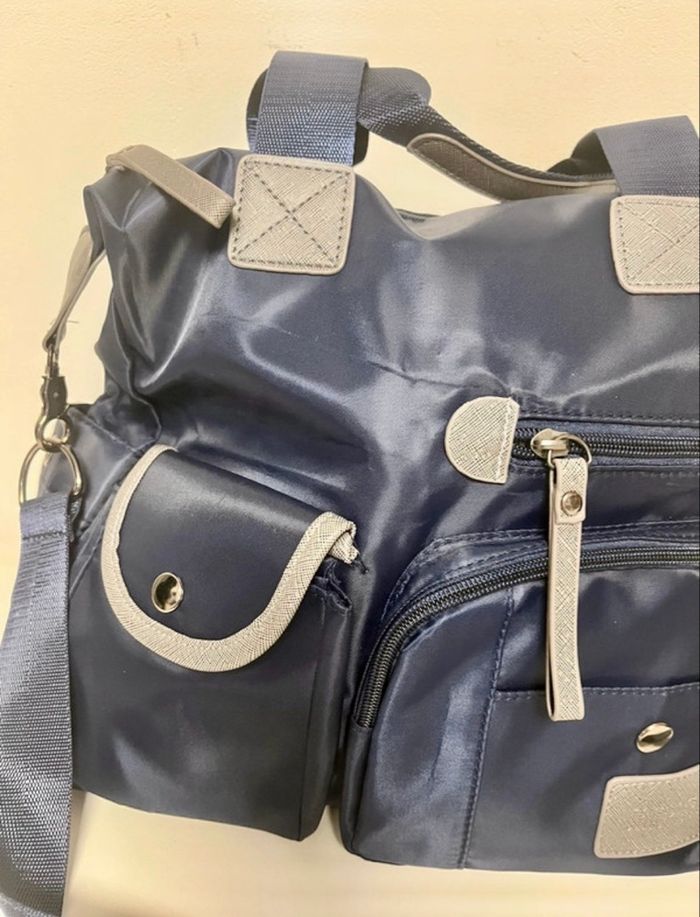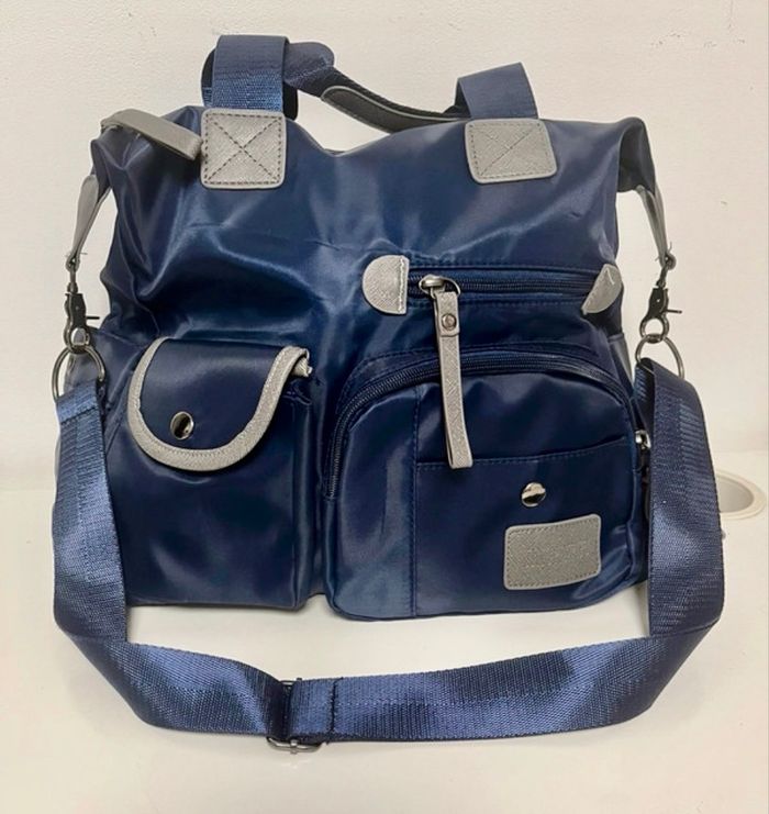 Sac de voyage ou autre à bandoulière avec pleins de poches De marque jingpinpiju dimensions : 34 cm largeur 13 cm longueur 30 cm hauteur bleu et gris anti-dechirure et imperméable neuf sans étiquette