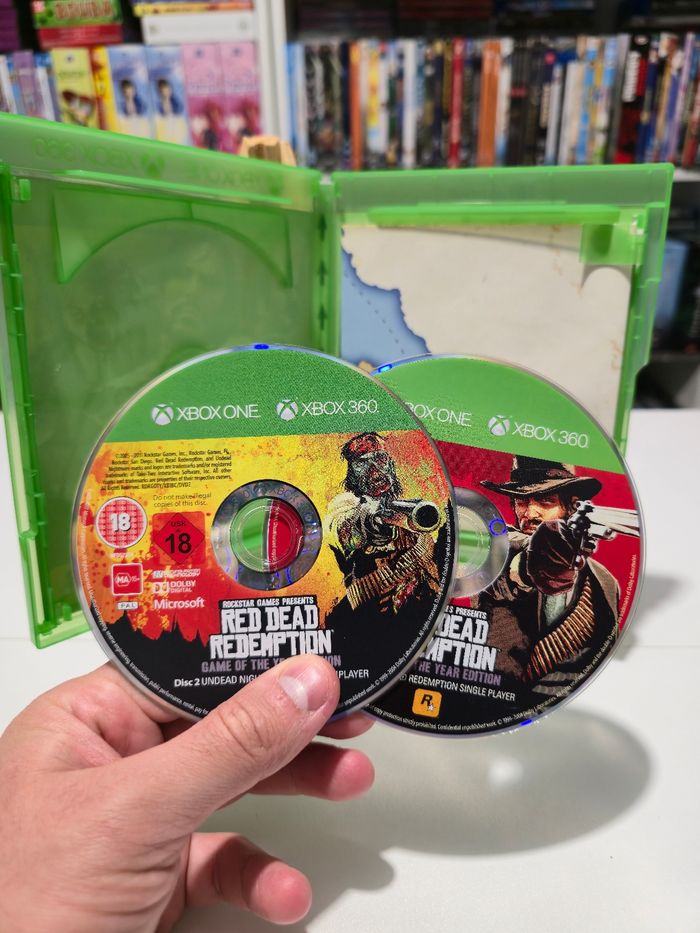 Jeu Xbox Red Dead Redemptions Game of the Year Edition pour Xbox One & Xbox 360. Il y a les 2 cd's, en très bon état, le boitier est un pei abîmer (voir photo), la carte du jeu est présente, envoi rapide.