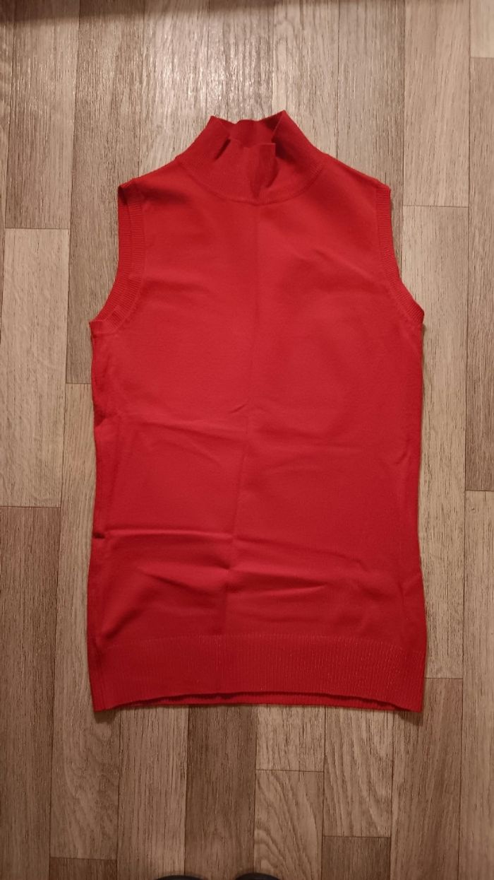 👕 Col roulé sans manches rouge 📏 35,5 cm d'aisselle à aisselle et 51 cm de longueur ✔️ Très bon état 🚚 Envoi rapide
