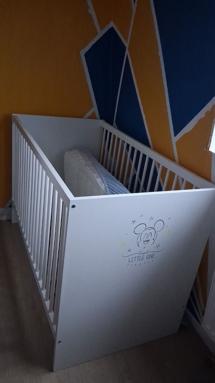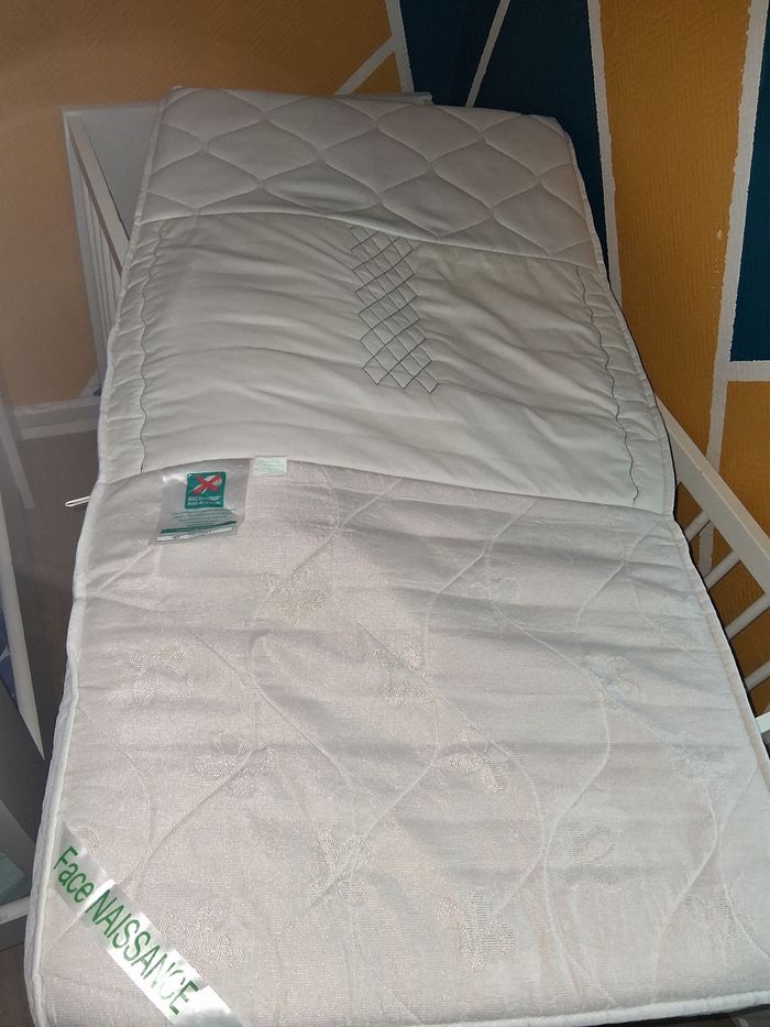 Lit bebe en bon état quelques marques de frottement d'usure a quelques endroits, avec ou sans matelas lui aussi en bon état d'utilisation, dehoussable et lavable en machine