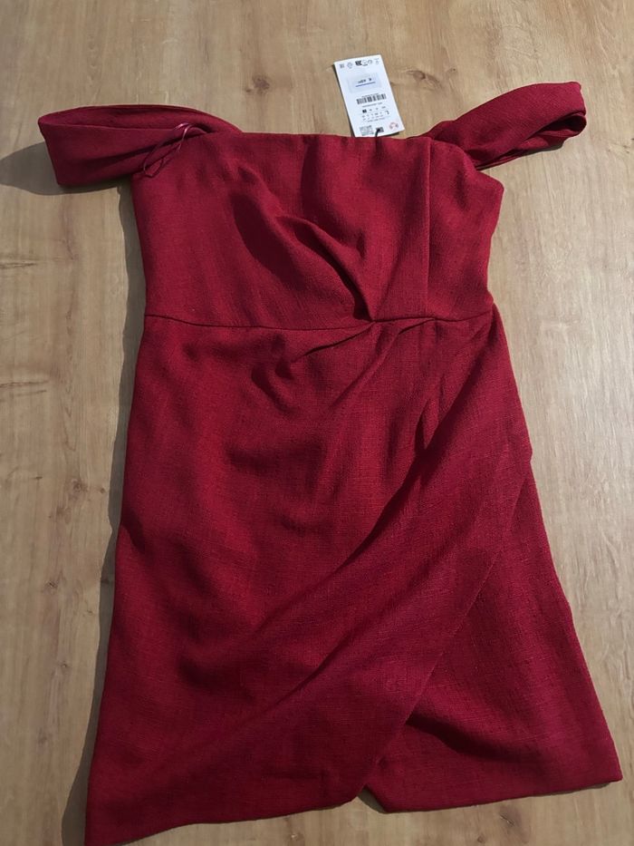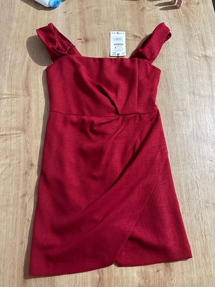 Je vend cette Robe Zara neuve avec étiquett. Très belle coupe asymétrique avec drapé, élégante et flatteuse. ! Couleur bordeaux/rouge a paillettes ☺️