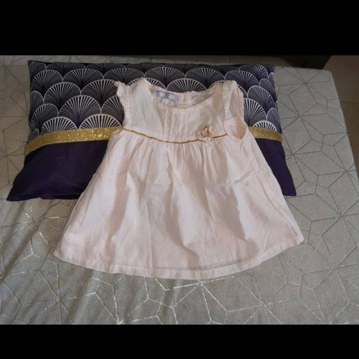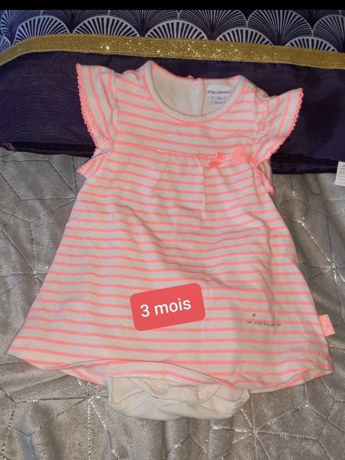 Lot de 2 robes -Une robe rose -Une barboteuse avec culotte intégrée blanches à rayures oranges (p'tit bisou)