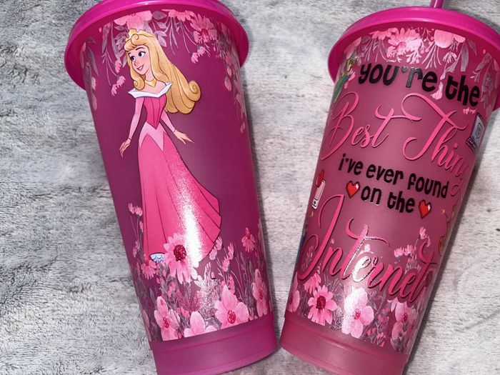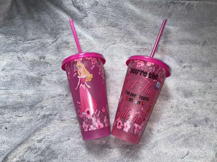 Bonjour PRIX À l'unité Grand gobelet avec paille 710 ml H18*L10*l6 cm AURORE la belle au bois dormant Princesses Disney NEUF jamais utilisé mais sans étiquette Plusieurs de dispo #marie59princessesdisney