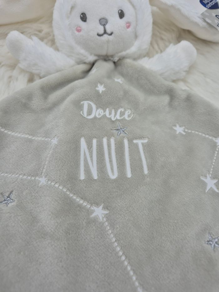 Doudou Ours déguisé (capuche) en lapin Gris motifs floqués et phosphorescent : étoiles, constellation, Douce Nuit Couleur : Gris blanc Marque : Mots D'enfants État : Neuf avec étiquette Vous achetez le doudou que vous voyez. Entièrement vérifié. 🔍Une recherche particulière ? Tout n'est pas en ligne, n'hésitez pas à me contacter 😊 🛒Plusieurs articles vous intéressent ? Optez pour un lot, réduction appliquée 😉 #VDR_A39 #VDR_MOTSDENFANTS #VDR_OURS Mots-clés : Sos Doudou, comforter, knuffel, knuffeldoekje