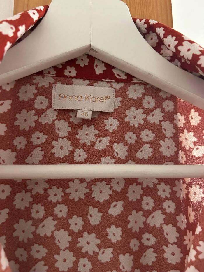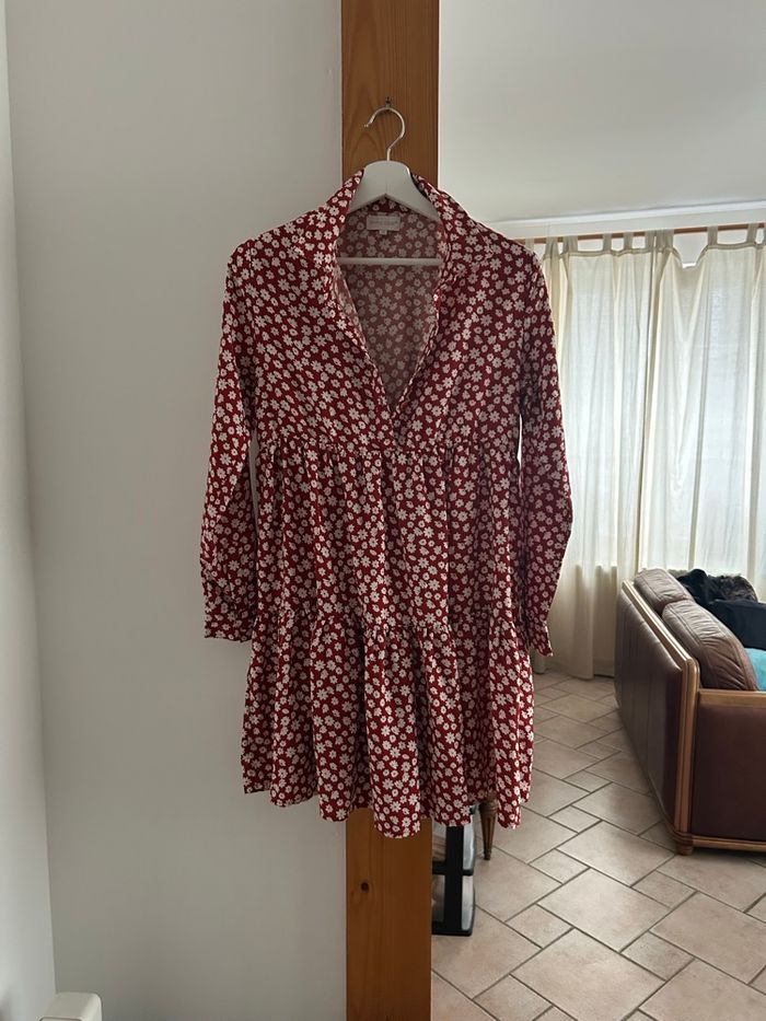 Robe manches longues rouge avec petite fleurs blanche, taille S, de la marque Anna Karel Envoie rapide et efficace 🌸📦