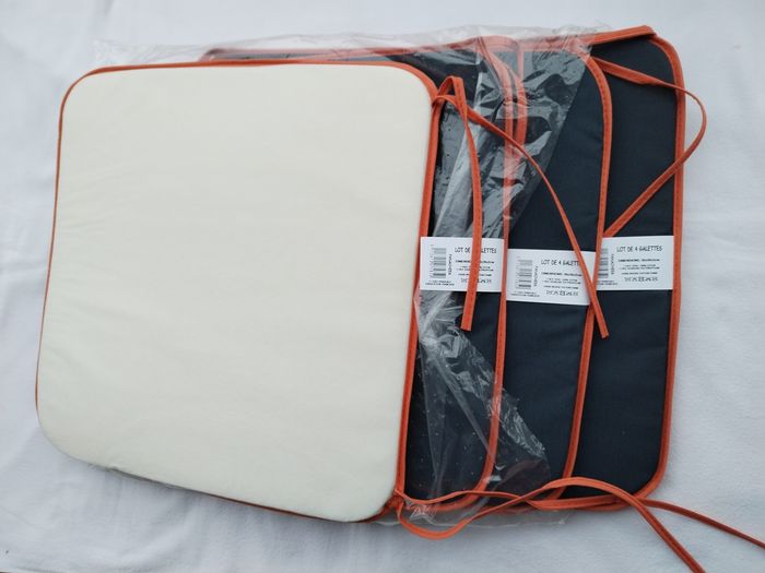 Lot de 4 galettes de chaise noir et orange neuf  - photo numéro 5