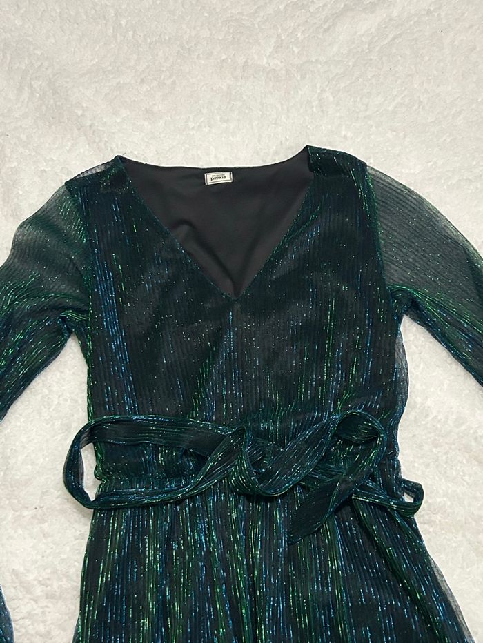 Robe de soirée pailletée Pimkie Manche en tissu transparent pailleté Couleur bleu et vert Mélangé de tissus transparent et opaque pailletés Taille S