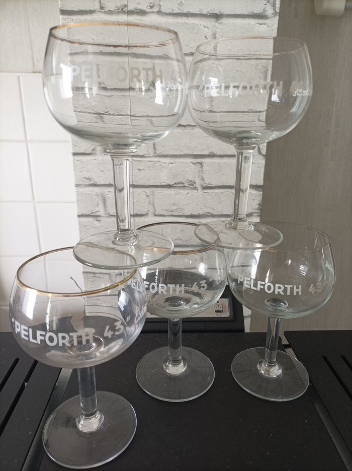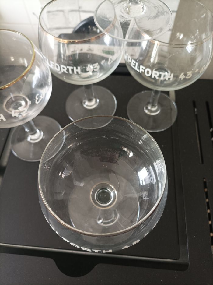 6 verres a bierre pelforth 43 extra scotch hauteur du verrs avec le pied 15.5 cm usure sur le liseret or