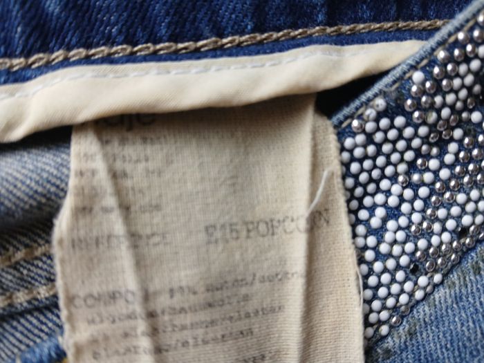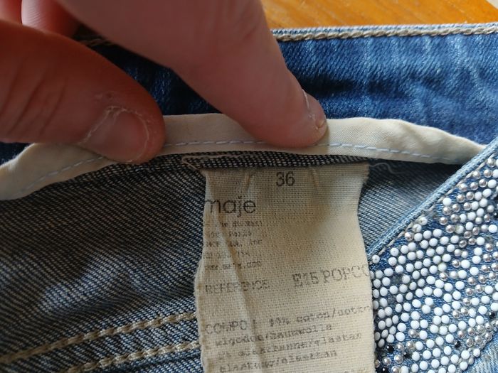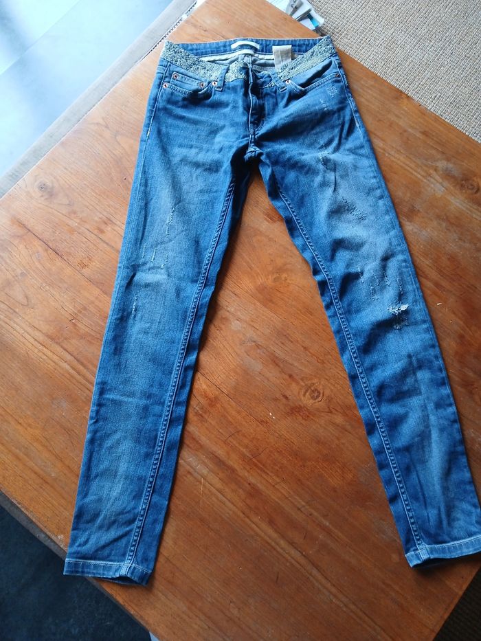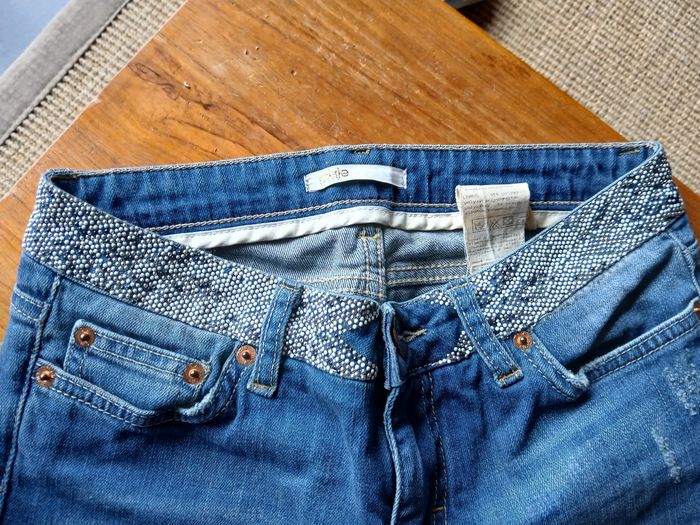 Jean avec ceinture en perles popcorn incrustées. Marque Maje Taille 36 Très bon état