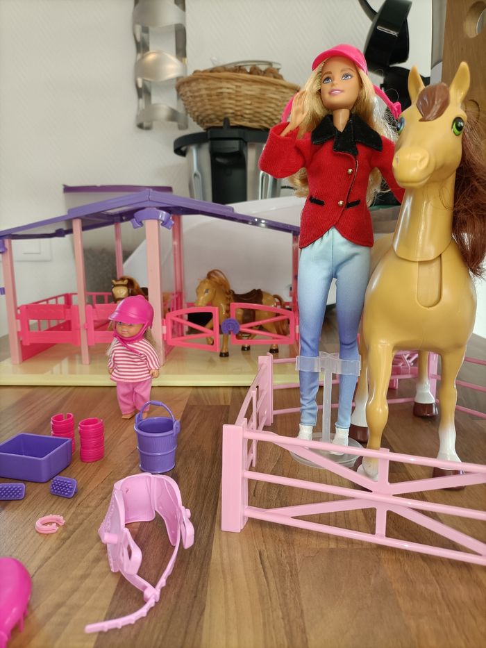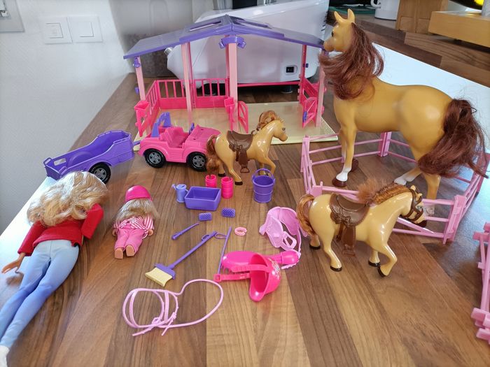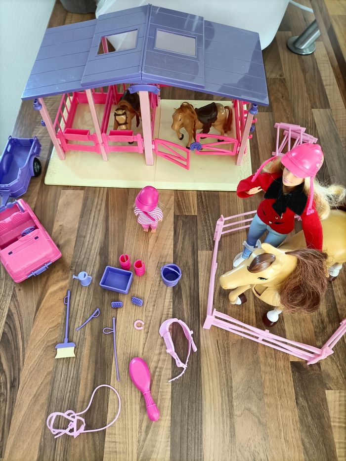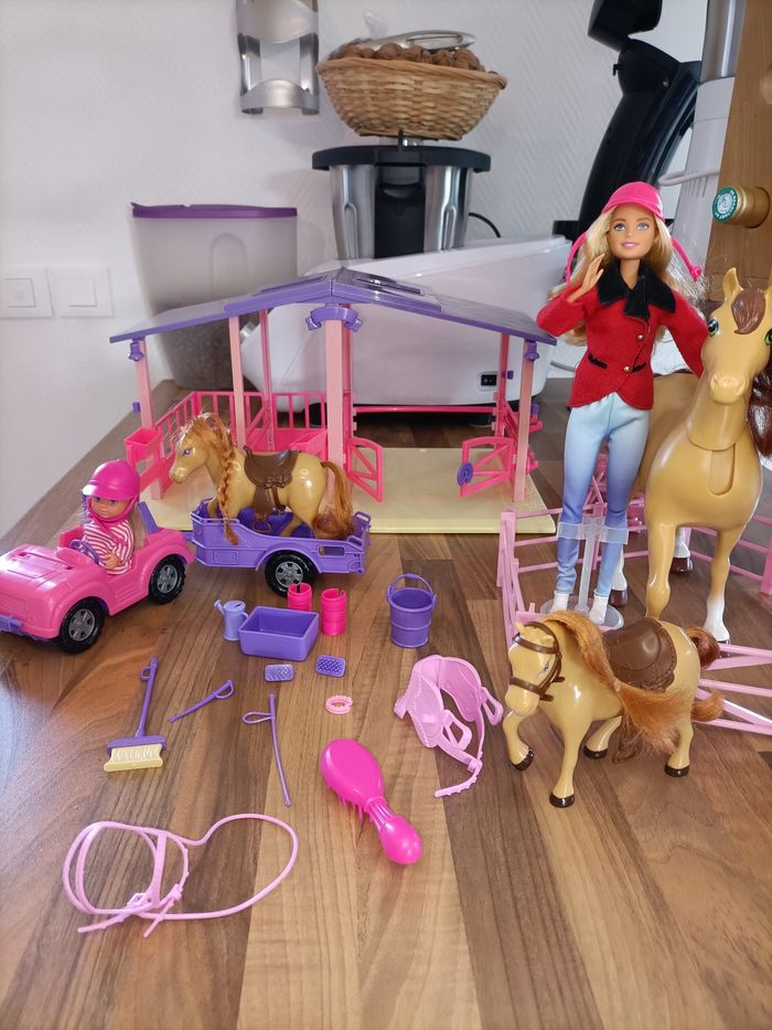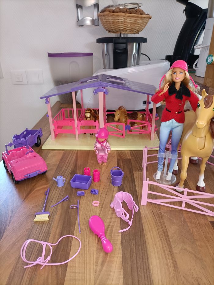 Lot Barbie Écurie avec 2 poneys + 1 cheval + 2 barbies + van + nombreux accessoires