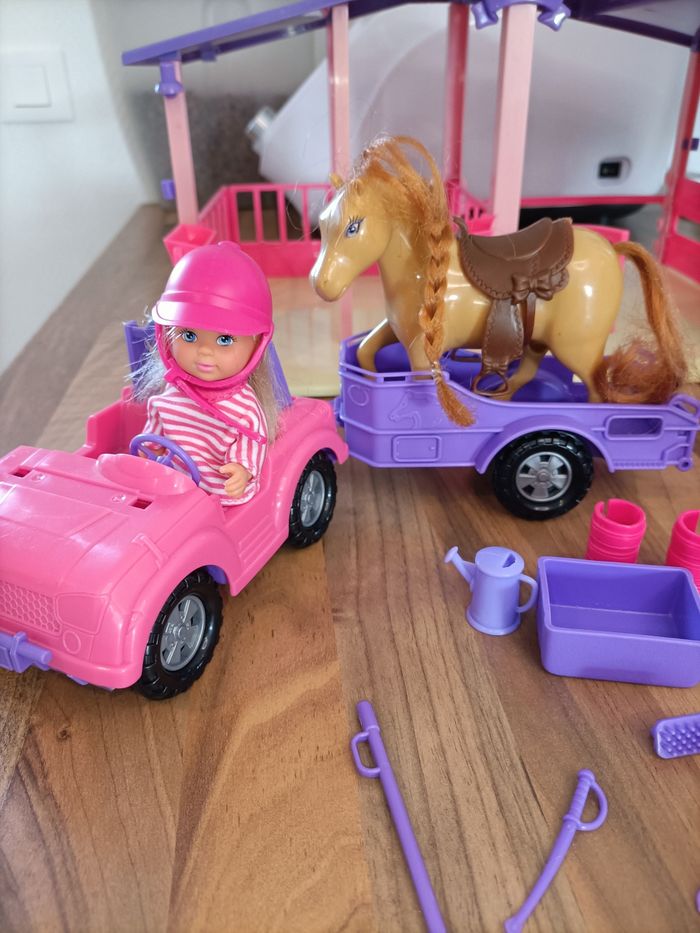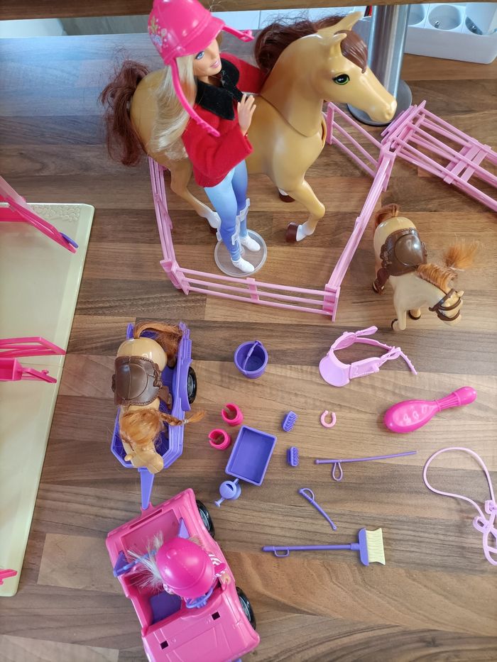 Lot Barbie Écurie avec 2 poneys + 1 cheval + 2 barbies + van + nombreux accessoires  - photo numéro 3