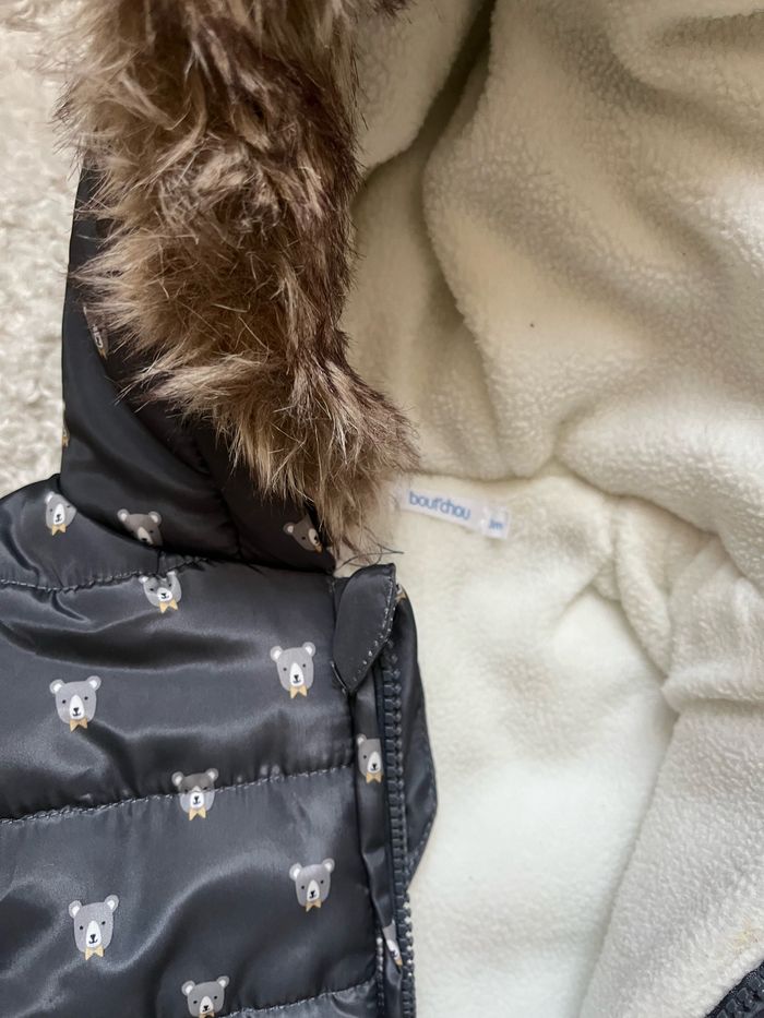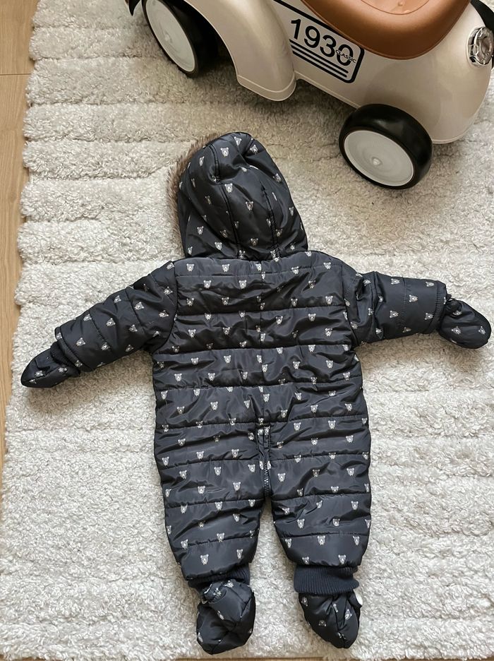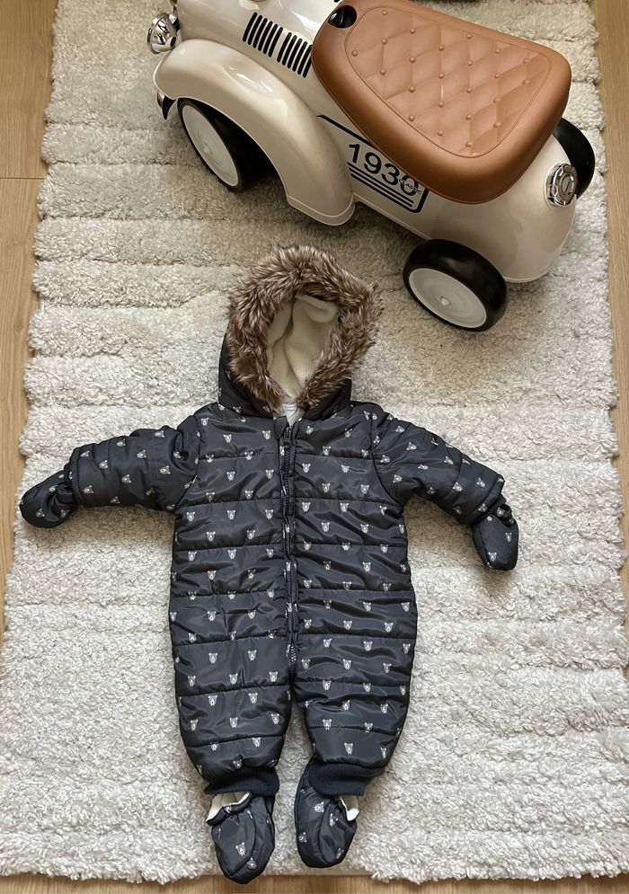 Combilote de la marque Bout’chou avec moufles et sur chaussures déclipsables avec des pressions, en très bon état car très peu portés. Taille 3 mois