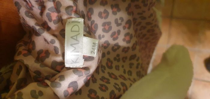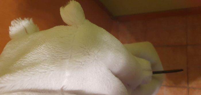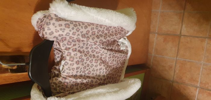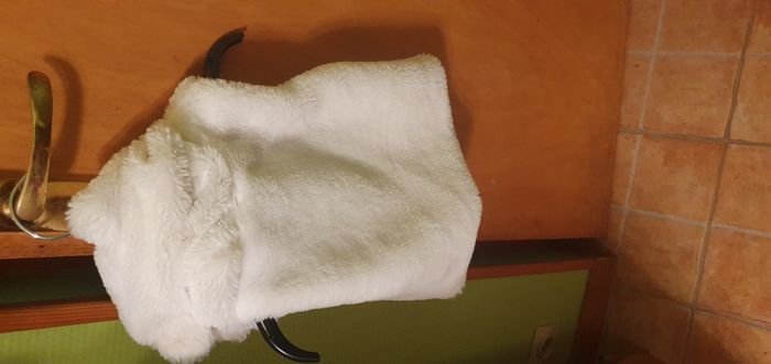Joli et doux paletot sans manches et à capuche avec 2 oreilles entièrement doublé, imitation fourrure blanche sur le dessus, fermeture au col par bouton, taille 24 mois, marque Kimadi, 100% polyester.