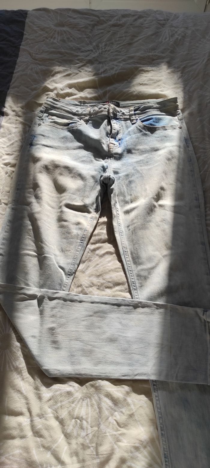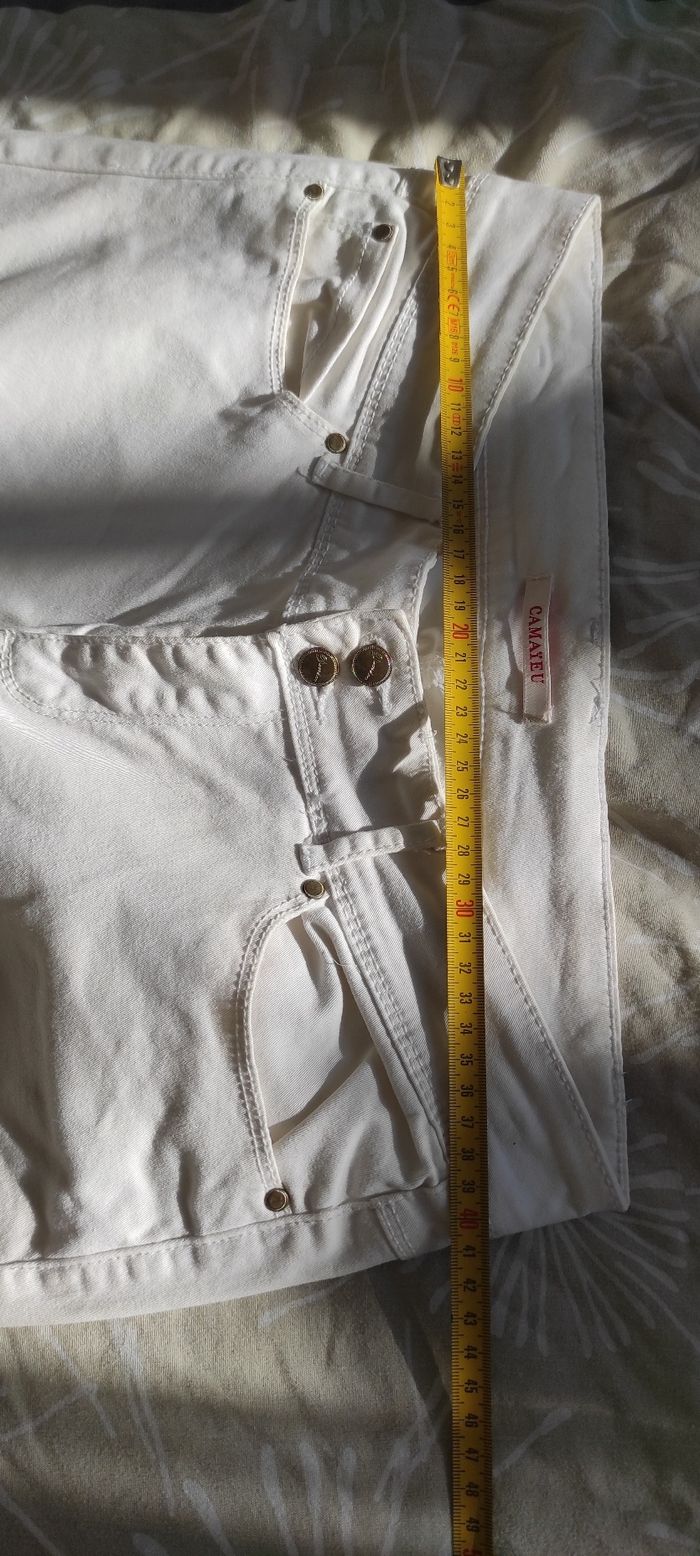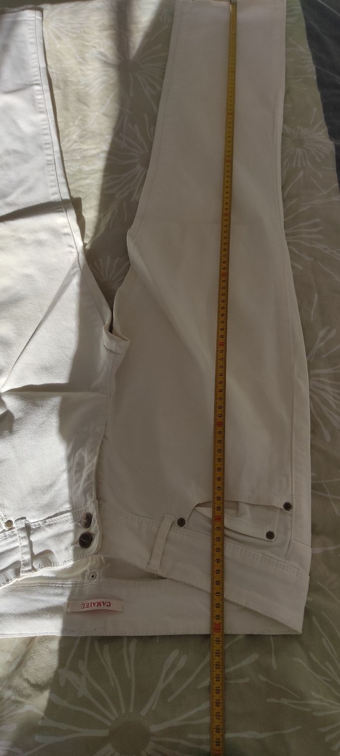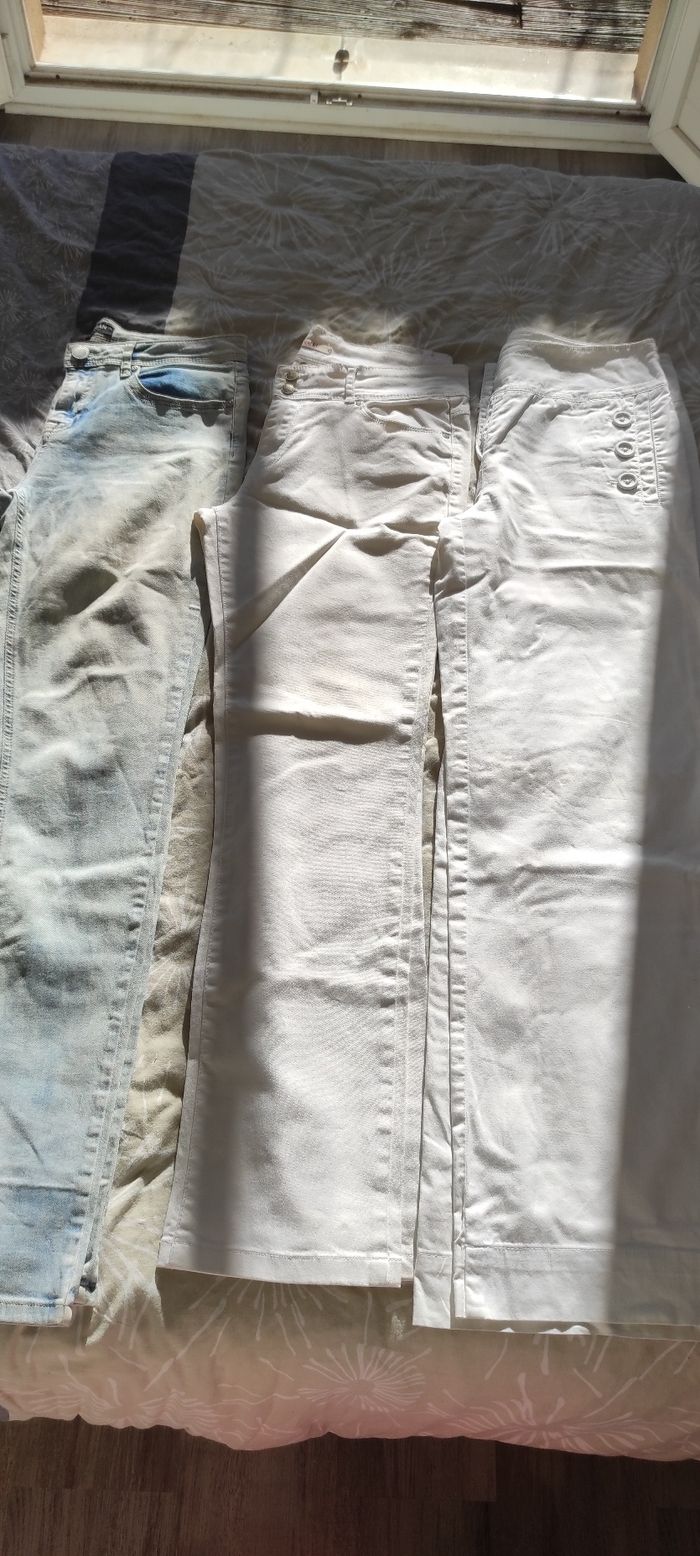 Lot pantalons taille M .1 Jean Morgan, délavé bleu très clair, poches avant et arrière, passants pour ceinture, porté et toujours en bon état . 1 Pantalon blanc Etam, poches arrière fermées, bas évasé large, porté plusieurs fois, bon état général .1 Pantalon blanc Camaïeu, poches avant et arrière, porté plusieurs fois, style jean, bon état (quelques traces très légères au niveau de la poche arrière voir photo) Dimensions de chaque pantalons en photo , (environ 104cm de hauteur et 41cm de tout de taille)