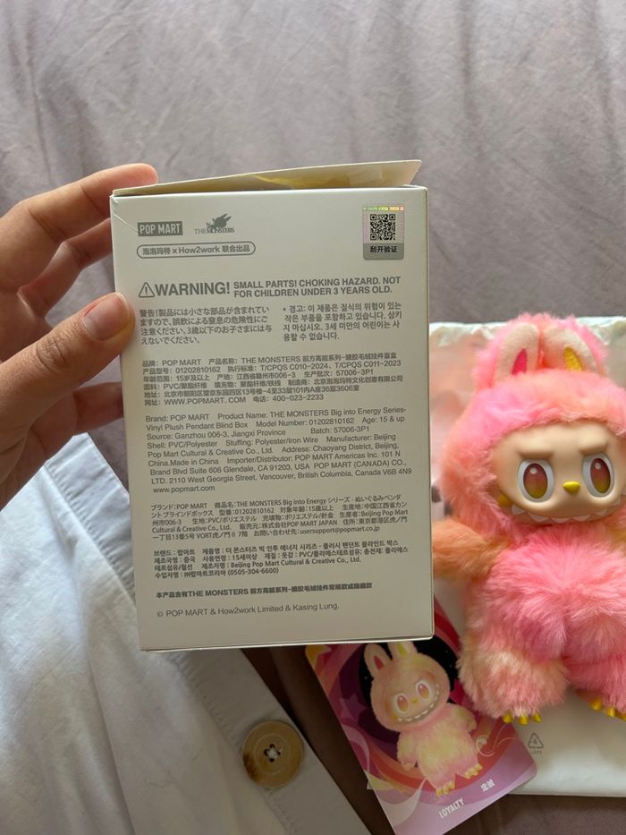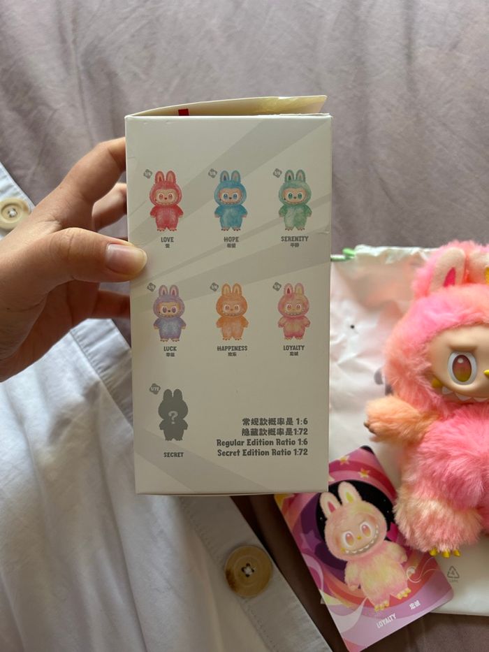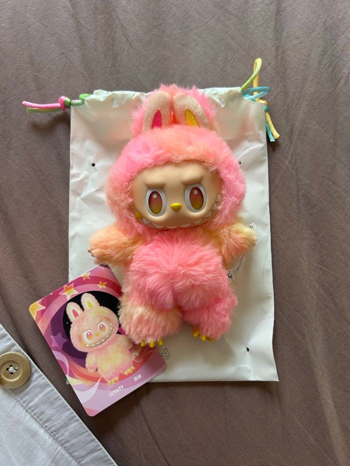 Labubu Big Into Energy Loyalty 🩷 Labubu The Monsters - Big into Energy 🌈 Authentique, acheté sur l’application Pop Mart ❤️ Labubu neuf, juste sorti de la boîte pour la photo📸 J’ai plusieurs Labubu à vendre, ils sont à 25€ mais il y a un code promo Beebs de -30% jusqu’au 5 février (code promo : CHOCOLAT30), cela les fait à 17,50€ l’un 🌈 Je vends d’autres Labubu dans mon dressing, n’hésitez pas à faire un lot si il y en a plusieurs qui vous intéresse 🩷