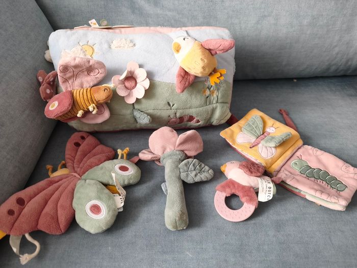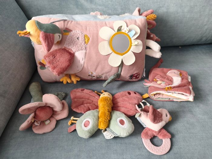 Joli lot Little Dutch – collection Fairy Garden, idéal pour l’éveil de bébé. Tout est en parfait état, très peu utilisé. Le lot comprend plusieurs jouets d’éveil sensoriel : ✨ matières variées à toucher 🔔 hochets qui font du bruit 👶 stimule la motricité fine, les sens et la curiosité 🌸 couleurs douces et univers poétique Maison non-fumeur, jouets propres et soignés. Vente en lot uniquement.