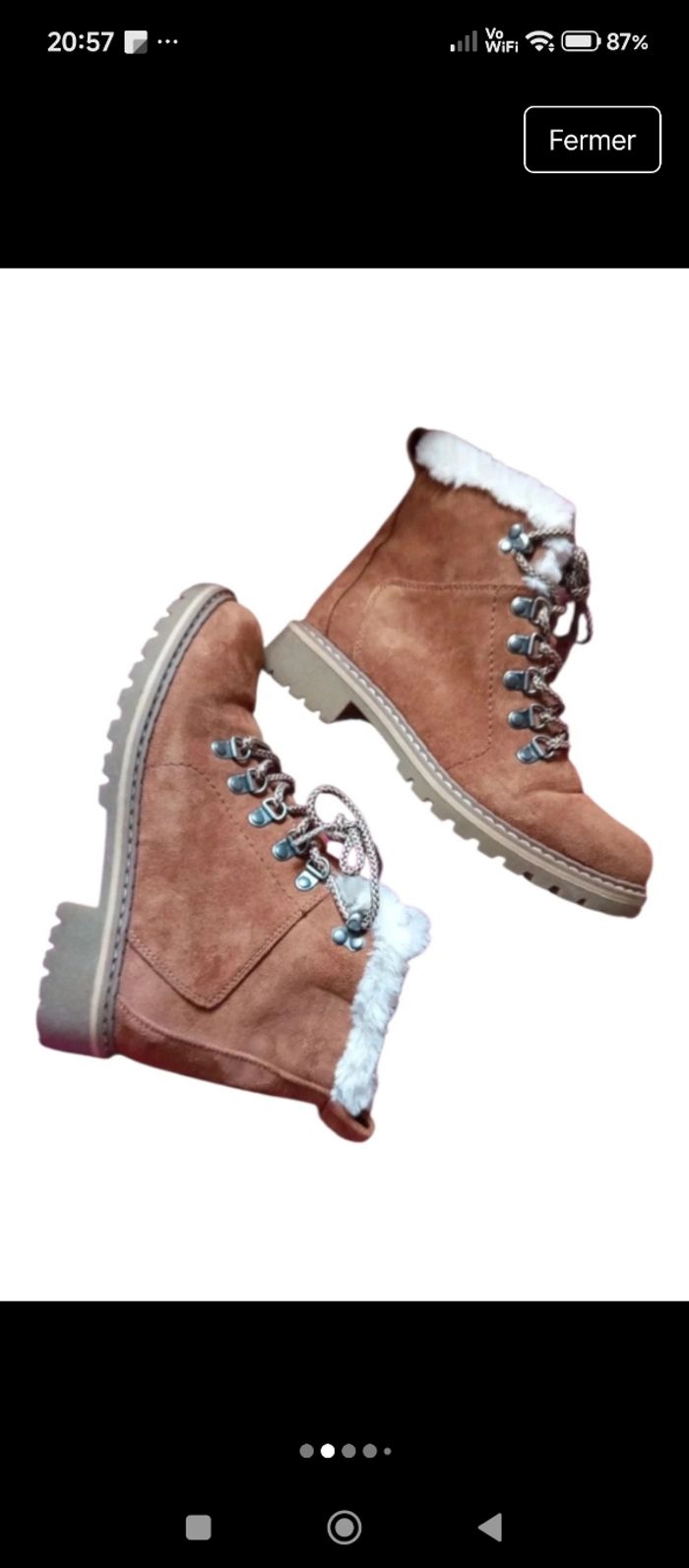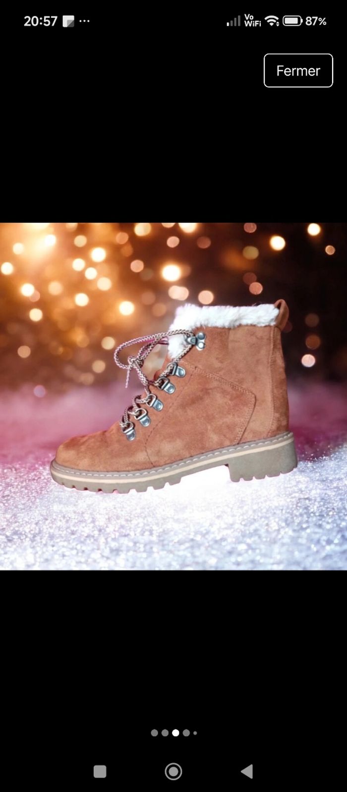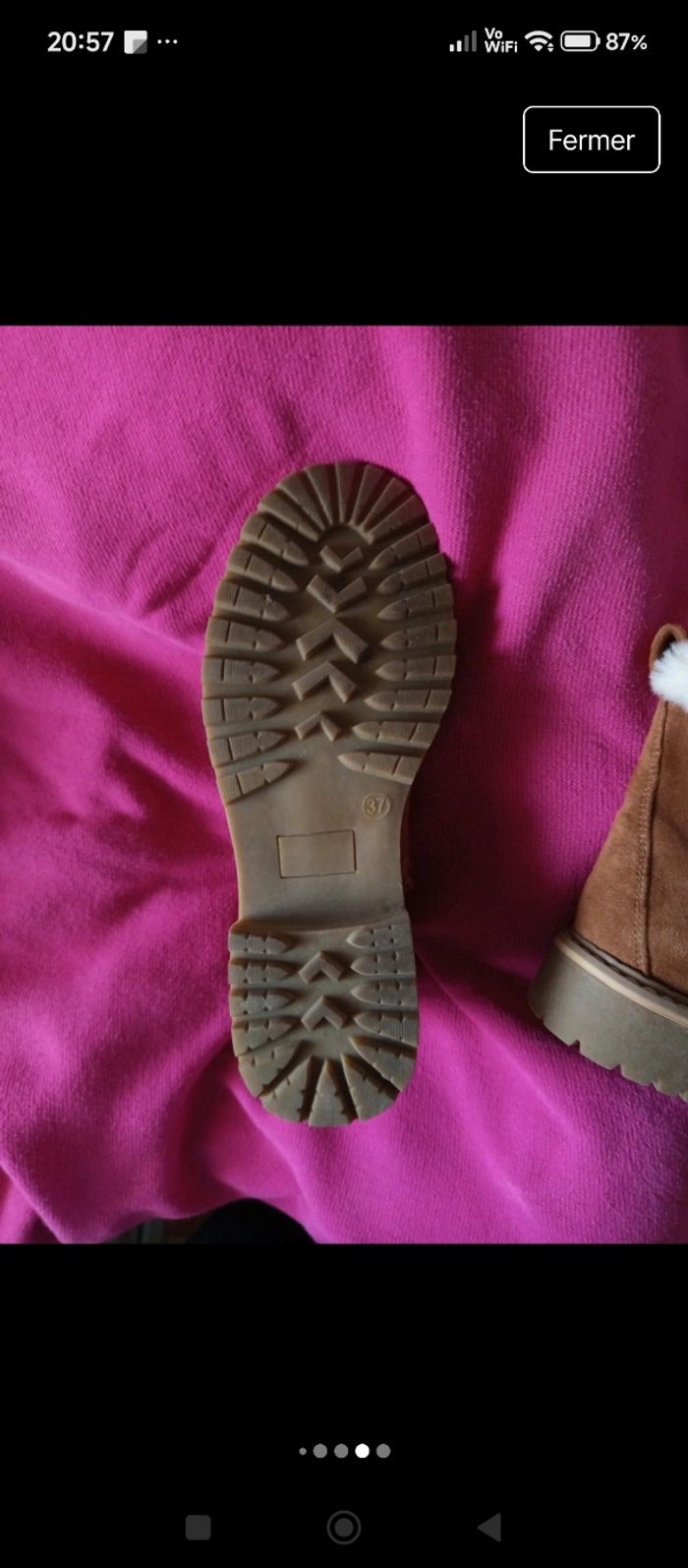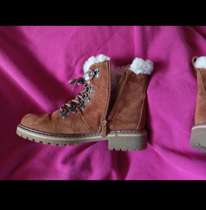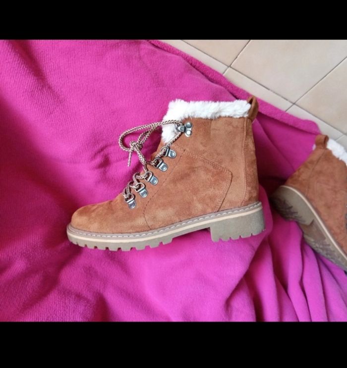 Chaussures en daim marron,moumouté à l'intérieur, fermeture éclair sur les côtés, excellent état à part juste quelques petites taches de coloration dans la fourrure intérieure, pointure 37 et de marque Fashion Private Company
