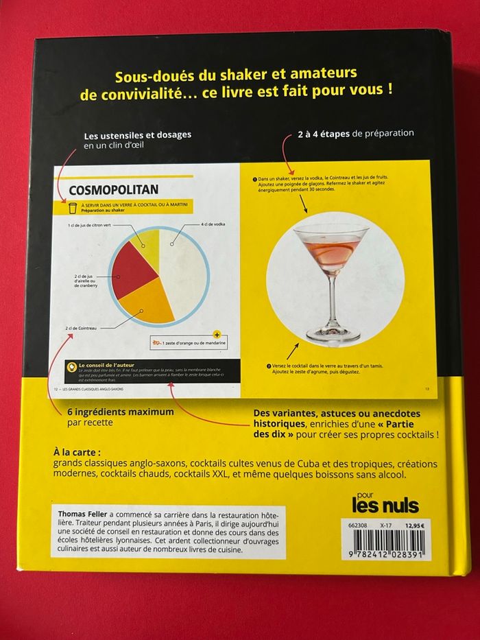 Je vends ce livre en parfait état Titre : Cocktails pour les nullissimes Auteur : Thomas Feller-Girod, Betul Balkan, Judith Clavel, Antartik Éditeur : First Editions Genre : Pratique - Nature - Voyages Sous-genre: Cuisine et gastronomie Art de vivre, Boissons Format : Relié 184 pages Hauteur : 24 cm Largeur : 19 cm Epaisseur : 2 cm Résumé Sous-doués du shaker et amateurs de convivialité... ce livre est fait pour vous ! Les ustensiles et dosages en un clin d'oeil 2 à 4 étapes de préparation 6 ingrédients maximum par recette Des variantes, astuces ou anecdotes historiques, enrichies d'une « Partie des dix » pour créer ses propres cocktails ! A la carte : grands classiques anglo-saxons, cocktails cultes venus de Cuba et des tropiques, créations modernes, cocktails chauds, cocktails XXL, et même quelques boissons sans alcool. Envoi rapide et très soigné