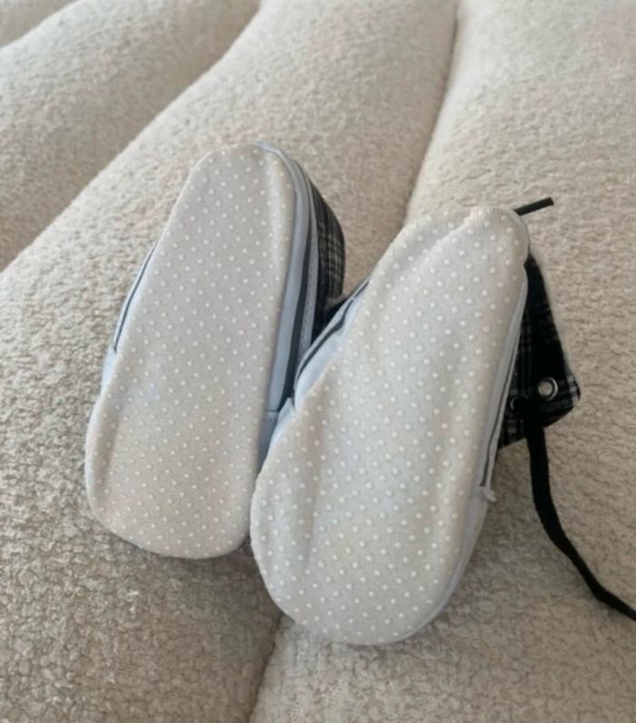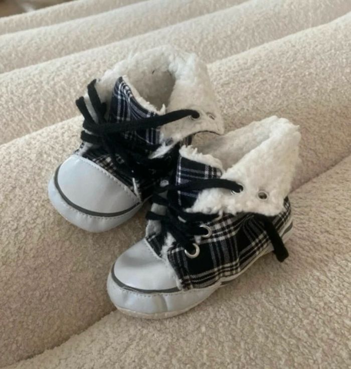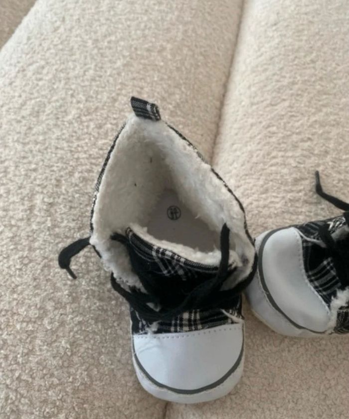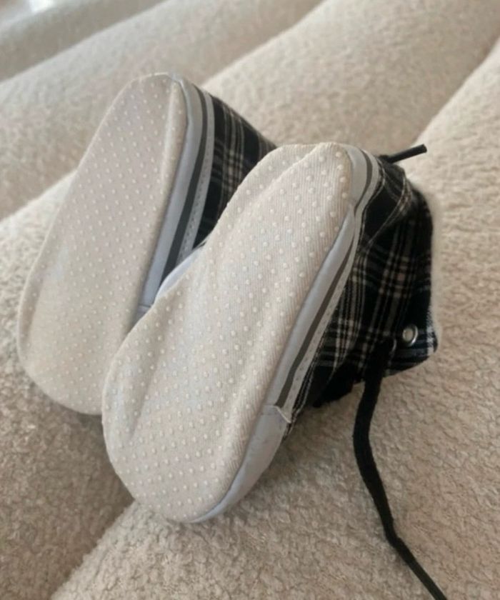 Chaussures style converse Neuve jamais portées mais sans la boîte ni étiquette Légèrement rembourrée Semelles dessous intactes cf photos sauf très légèrement jaunies Anti dérapantes Taille 20/21