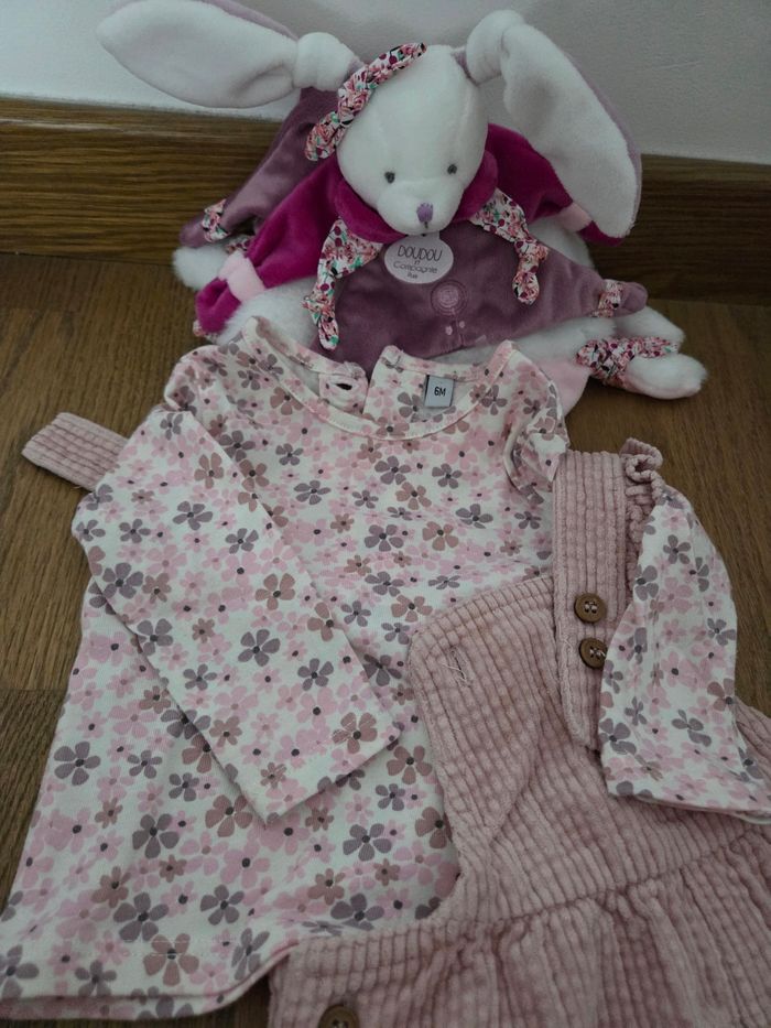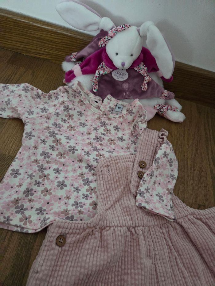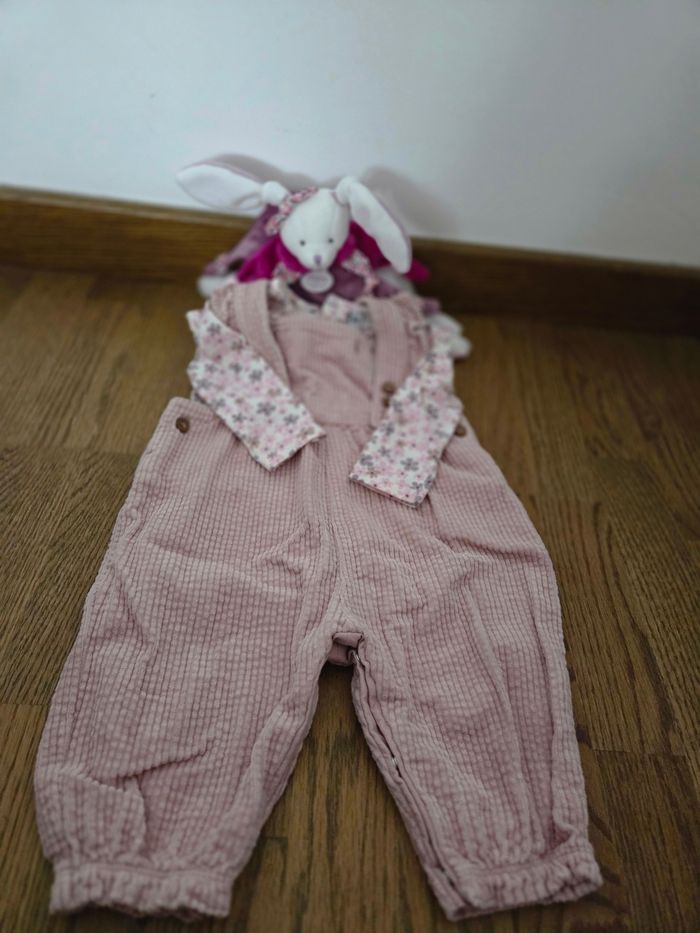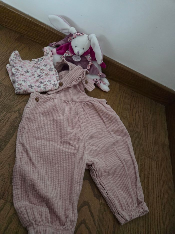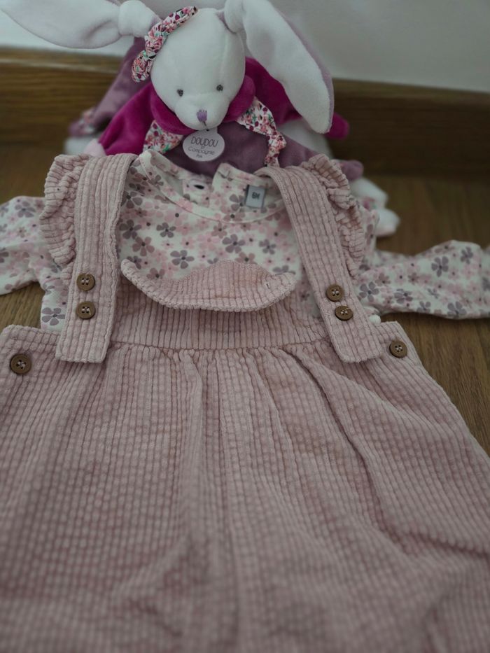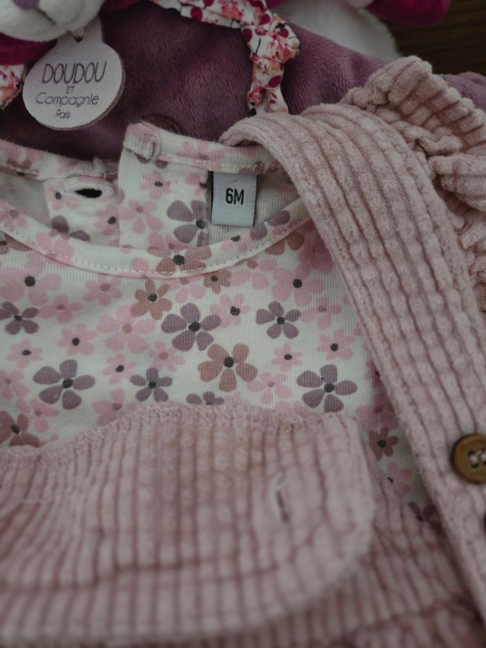 Superbe ensemble salopette chaude avec son petit sous pull fleuri. Très pratique puisqu'elle s'ouvre par le bas afin de faciliter les changes de bébé. Neuf. Sans aucun défaut. Princesse sera confortable et belle. Taille 6 mois.