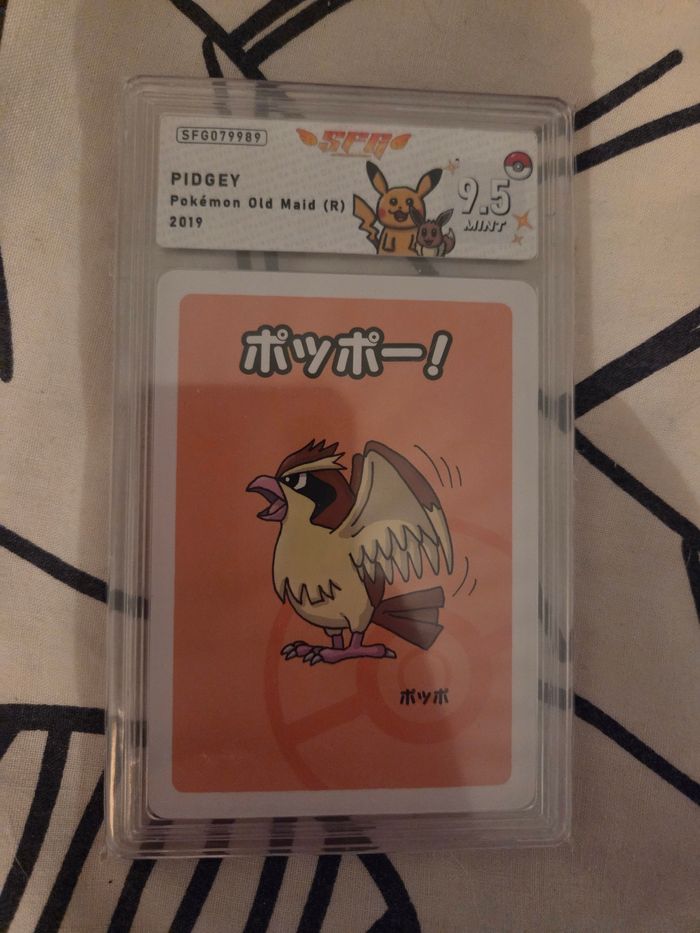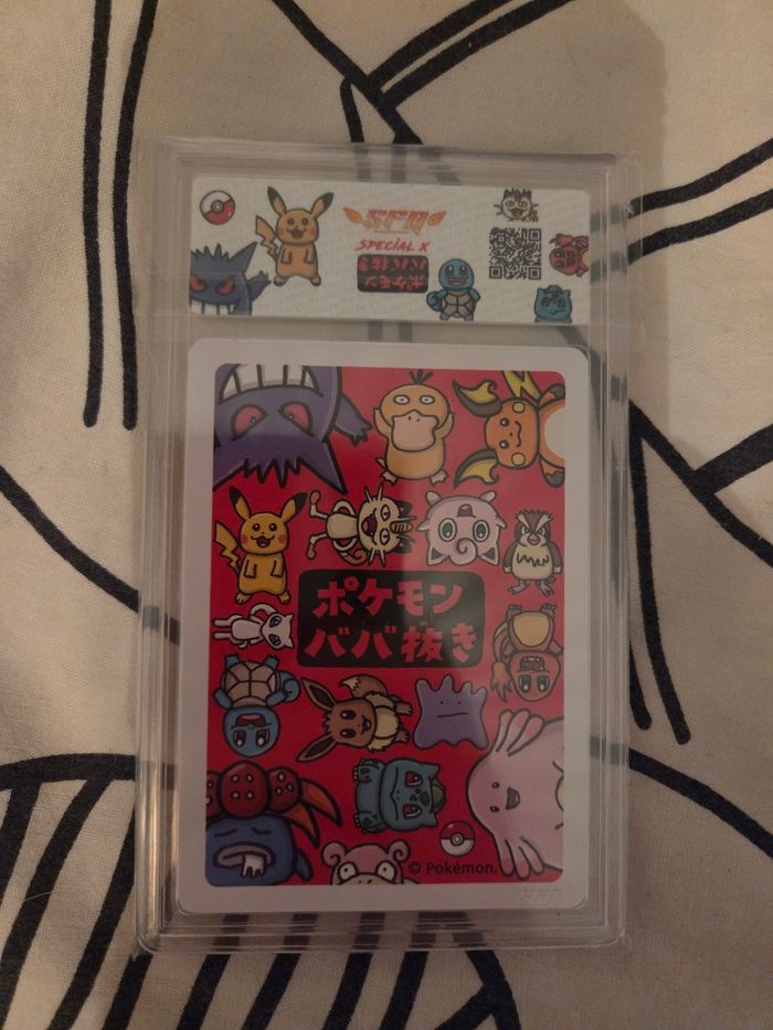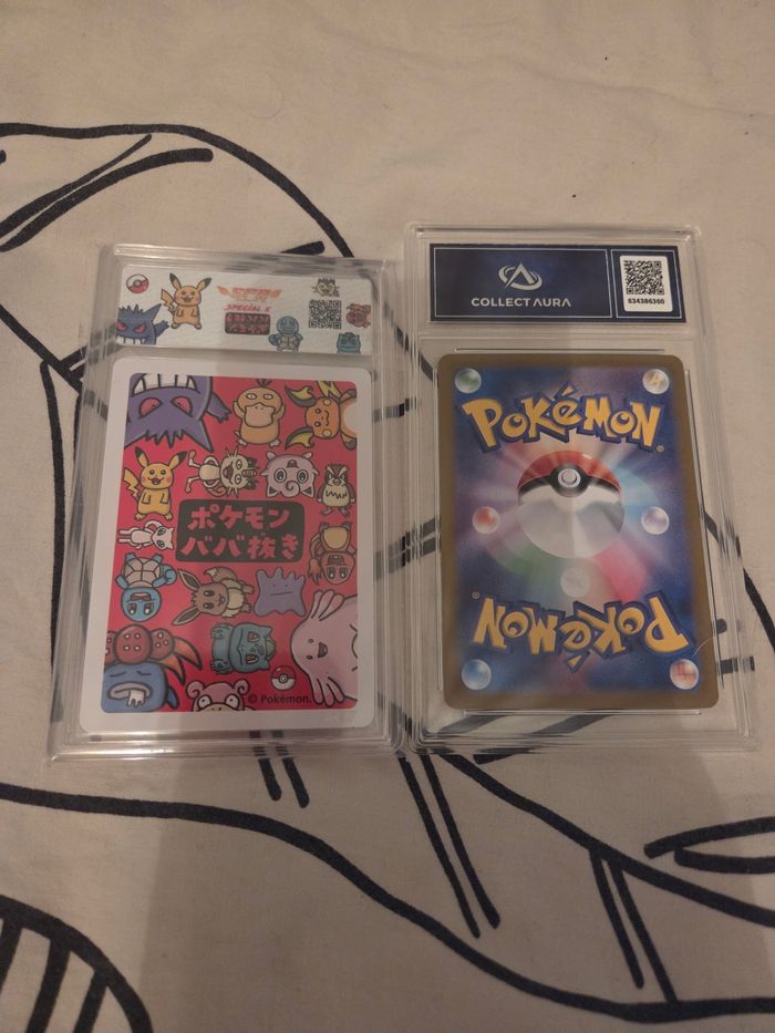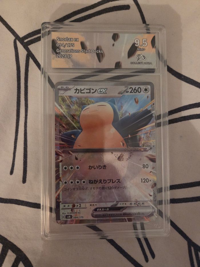 Je vends une carte Pokémon japonaise gradée Ronflex, de la collection Generations Start Decks 2024 IP. - Type de produit : Carte de collection Pokémon - Personnage : Ronflex - Édition : Generations Start Decks 2024 IP - Certification : Gradée 9.5 par Collectaura. Ainsi qu'une carte Pokémon Babanuki japonaise (exclusivité japonaise) Roucool Gradée, en parfait état. - Type de produit : Carte de collection Pokémon - Personnage : Roucool - Langue : Japonais - Particularité : Carte Gradée (notée 9.5/10). A savoir que les cartes Babanuki sont pas facile à obtenir en France et qu'au Japon elles se vendent comme des petits pains.