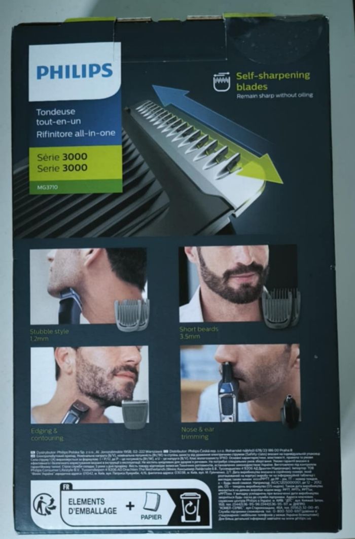 Vend tondeuse Philips série 3000 MG3710 tondeuse 6 en 1 ( nez , oreilles , barbe ) * 6 outils , * Jusqu'à 60 minutes d'autonomie * Accessoires rinçables * Stylisation du visage : Barbe longue , courte , de 3 jours et bouc Trousse de rangement et brossette de nettoyage