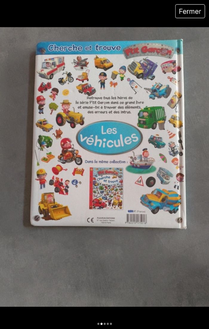 Livre cherche et trouve " les véhicules " éditions Fleurus, très bon état. 1 accroc (dernière photo)