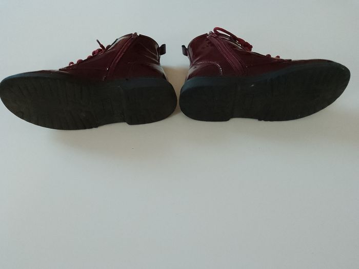 Bottines vernies bordeaux en bon état, à lacets et à zip