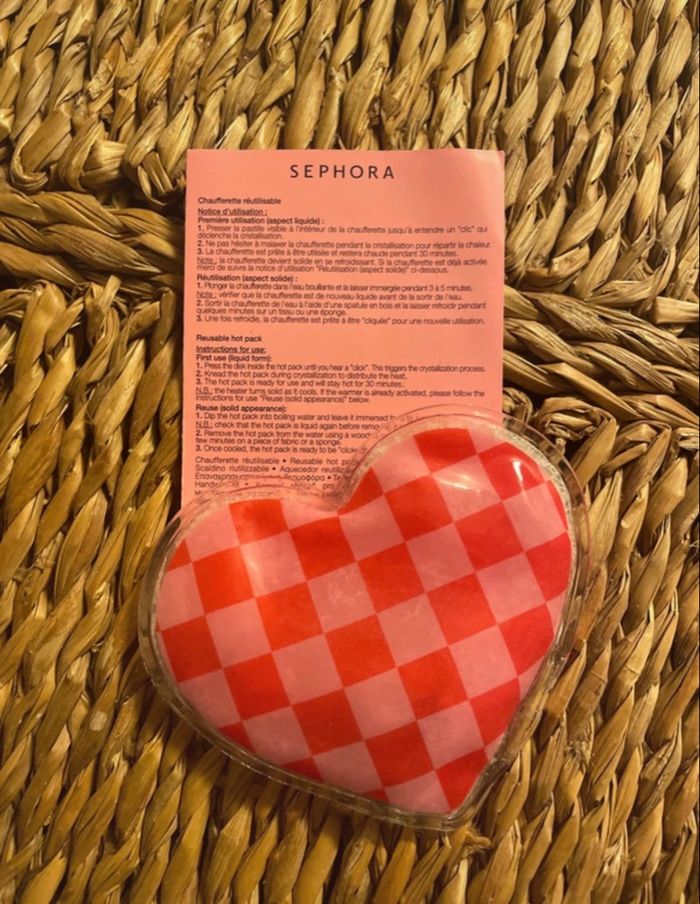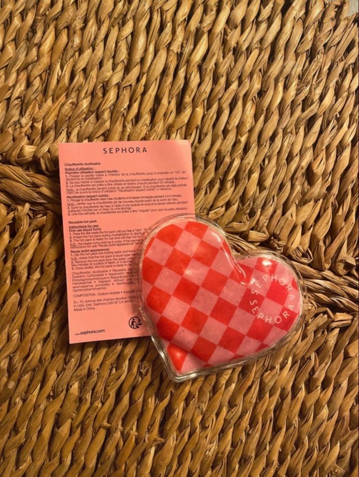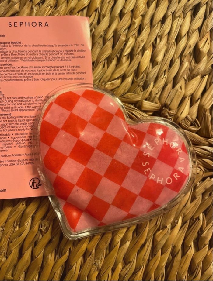 Bonjour, 👋🏼 Je vends ma chaufferette de poche en forme de cœur à damier rouge et rose Sephora.