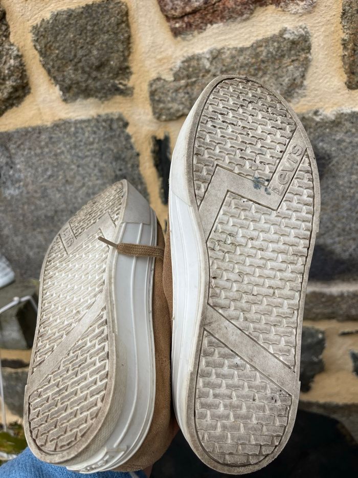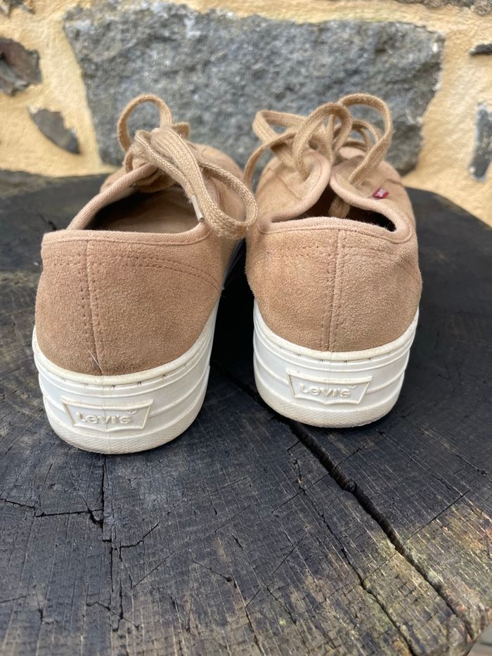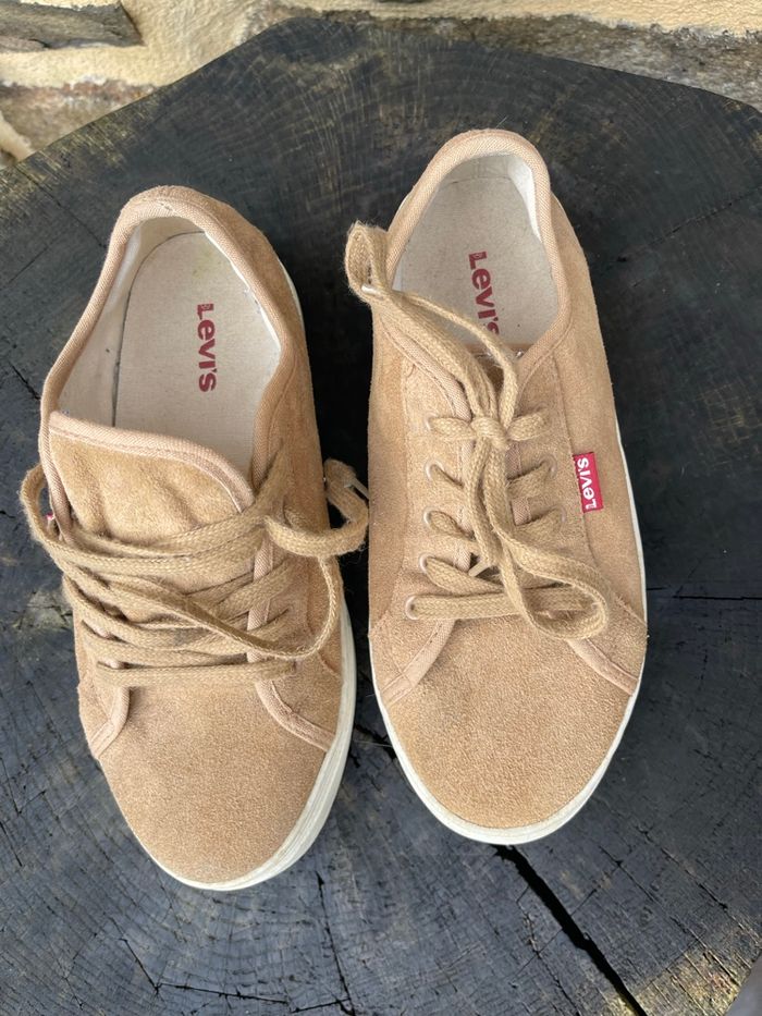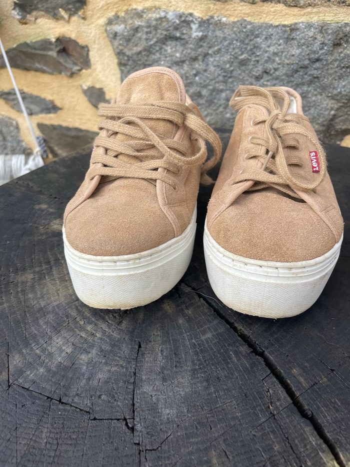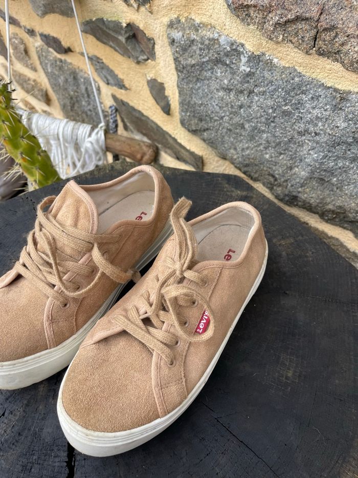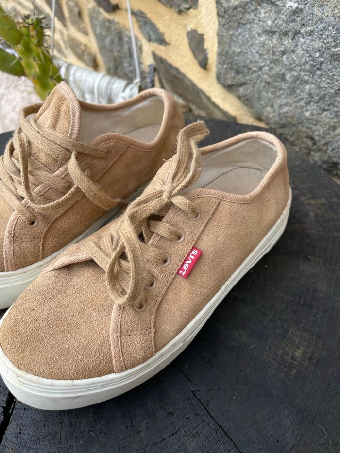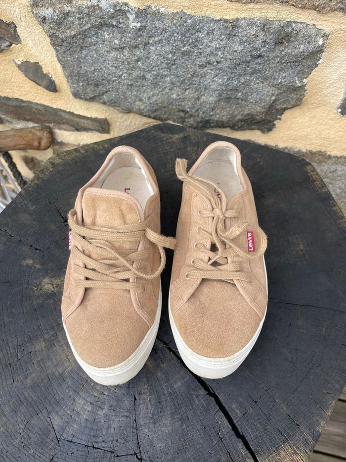 Baskets Levi’s modèle Tijuana en suédine beige/marron clair, semelle compensée blanche. Style moderne et facile à porter, parfait pour un look casual. Pointure 37 Très bonne état peu porter Levi’s