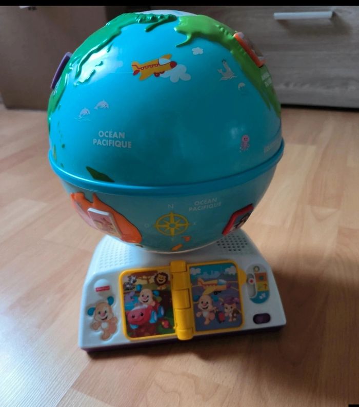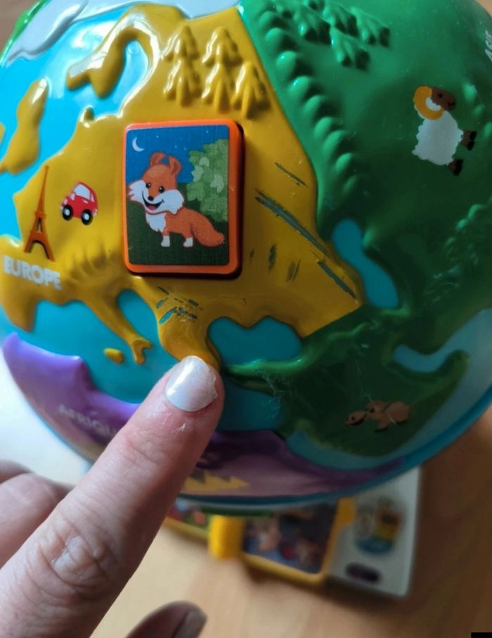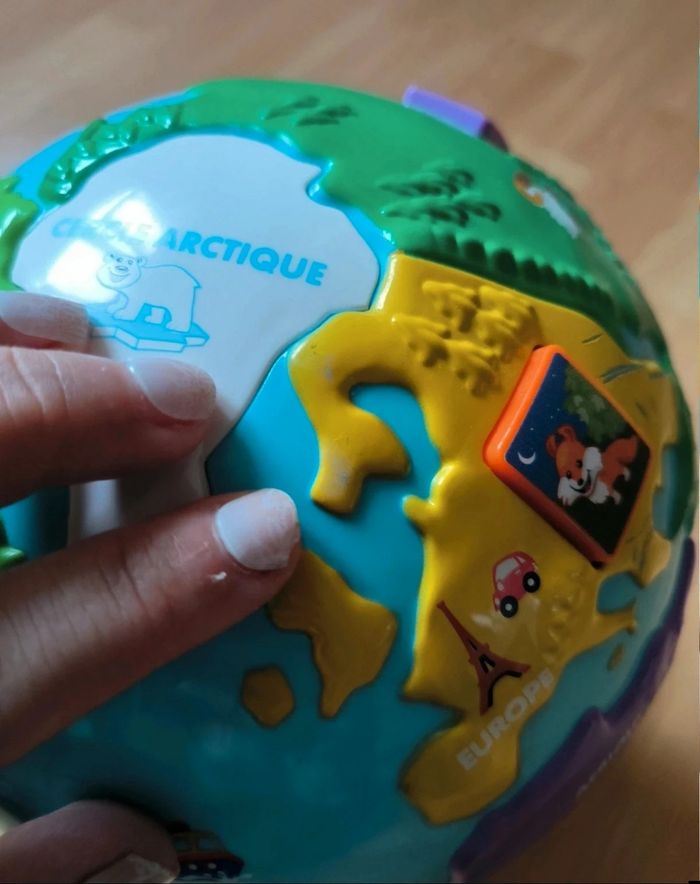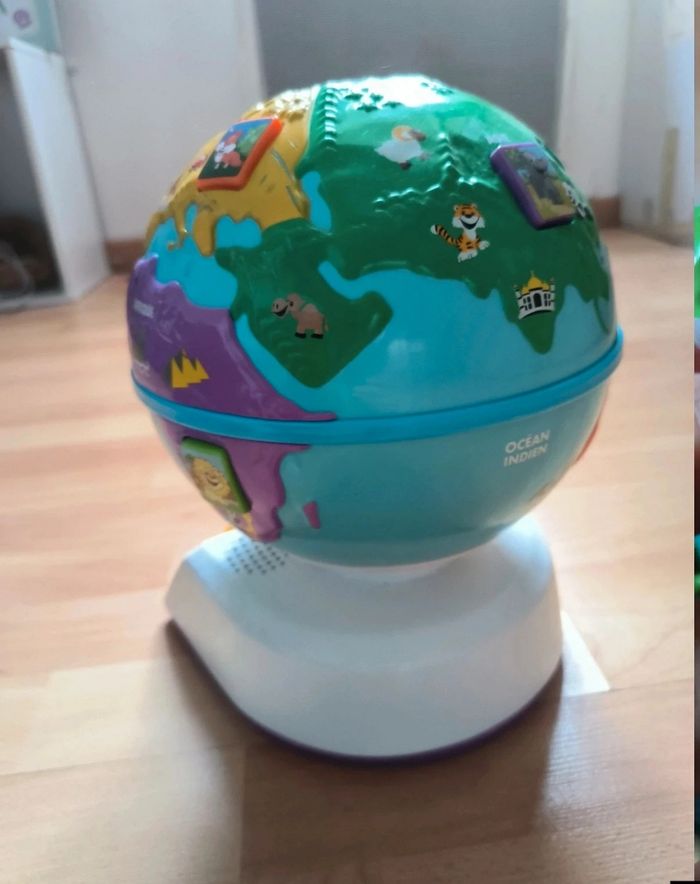 quelques défauts voir photo mais fonctionne très bien chacun donne des informations sur les animaux de chaque continent, ainsi que les salutations dans plusieurs langues. 3 niveaux de jeu: "écoute et apprends", "explore et trouve", ou, "chante et joue".